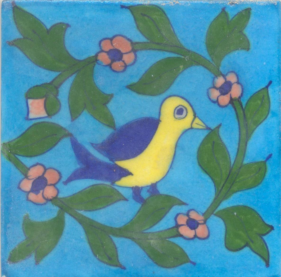 Handpainted Turquoise Bird Design Kitchen Blue Pottery 타일