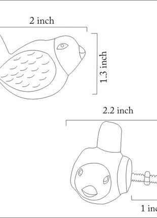 Kids Bird Design Ceramic Cabinet Knob. Unique, hand painted cabinet knobs which would be the perfect decorative touch for your kid's bedroom, bathroom cabinets and much more ! Includes screws for installation. Delivery time is normally 5 to 7 business days. Minimum order of three knobs - mix and match.