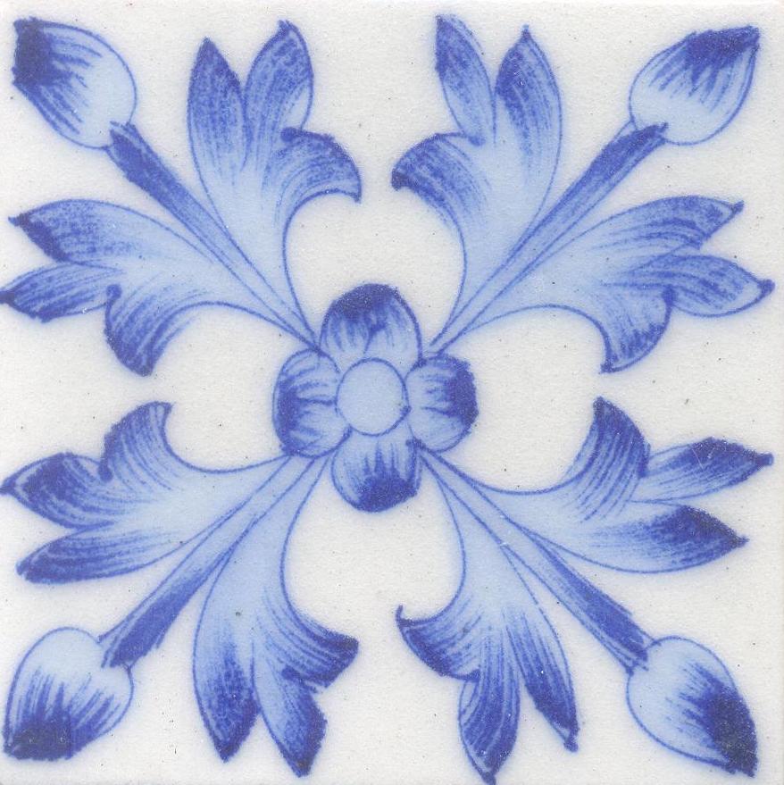Light Blue Flowers and leaf with White Base Tile