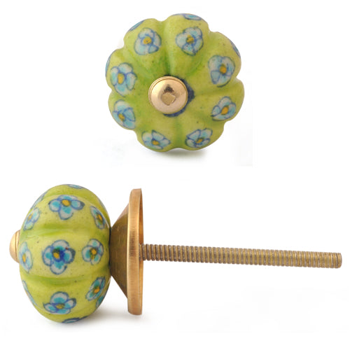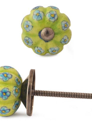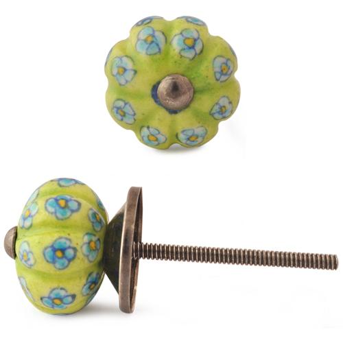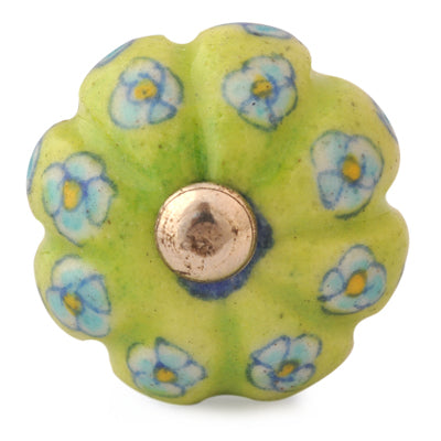 Lime Green Base Kitchen Cabinet Knob With Turquoise And Yellow Flower