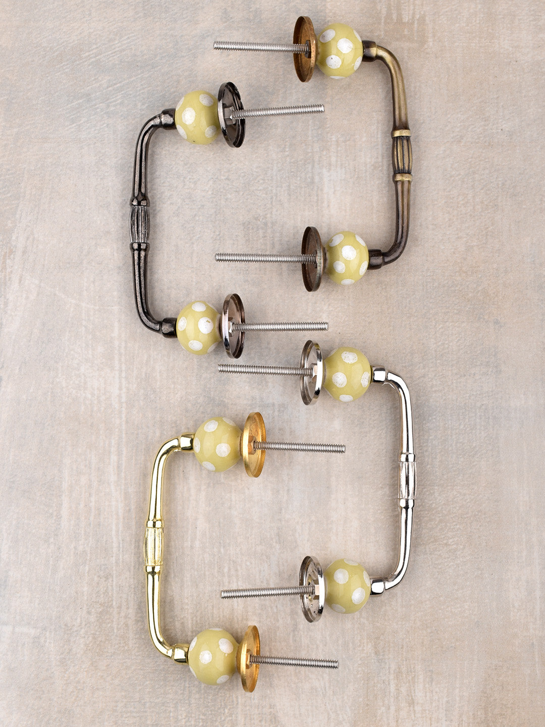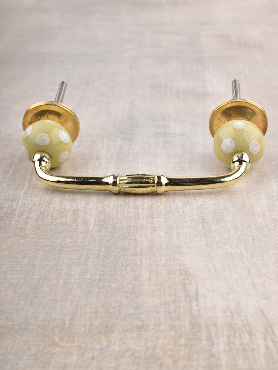 Lime Yellow Drawer Cabinet Pull With White Polka Dots