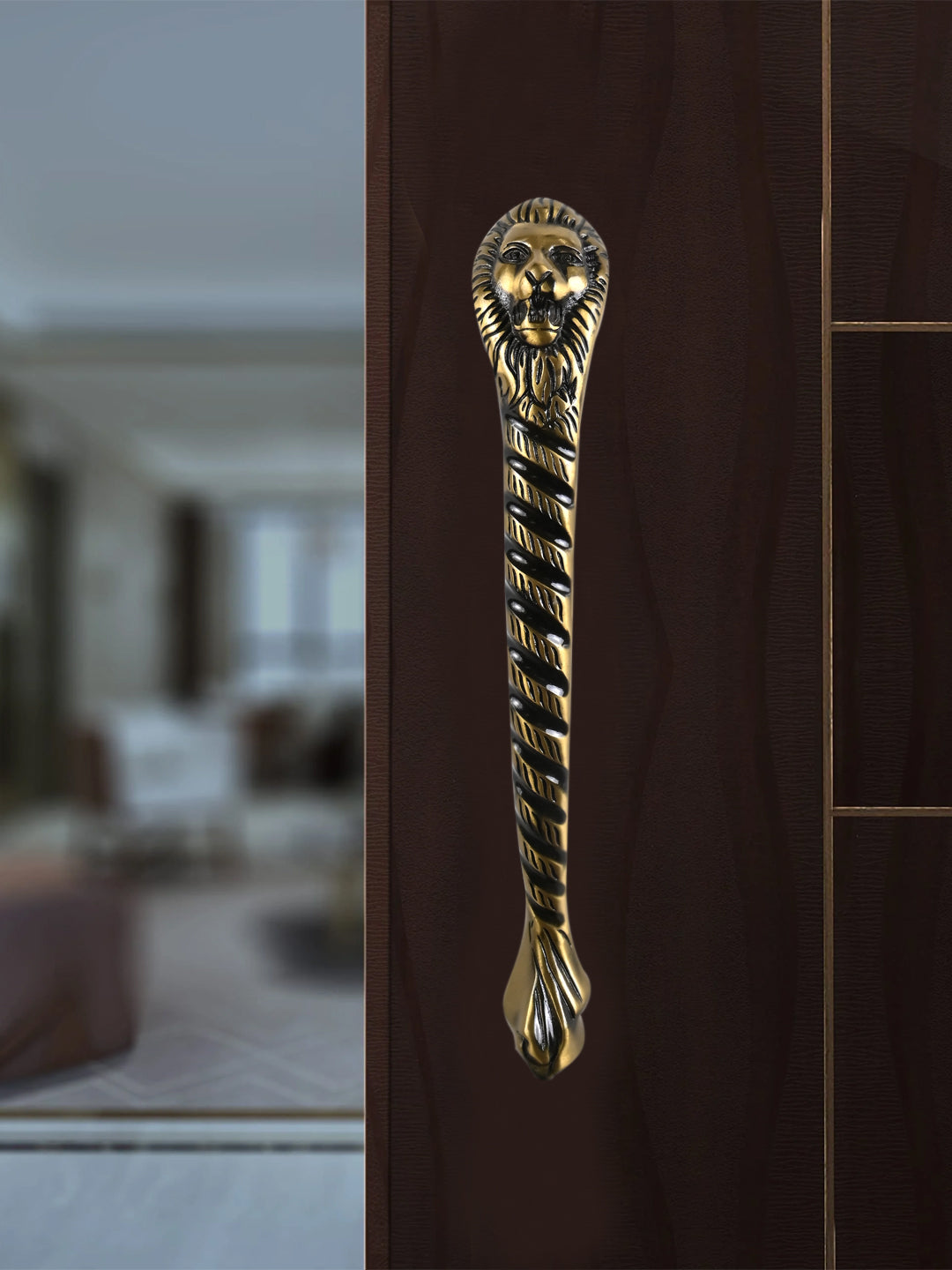 Lion Head Antique Brass Finished Door Handles - Vintage Style Cabinet Furniture Hardware