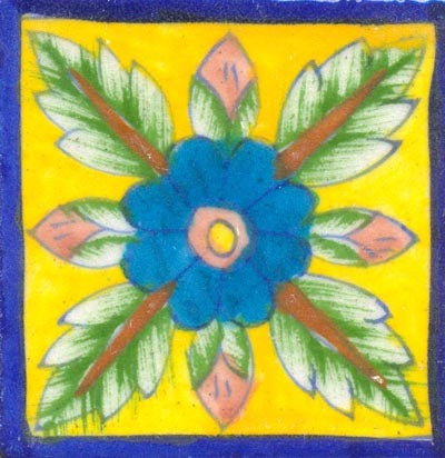 Luxury Kitchen Backsplash Floral Design Blue Pottery Tile