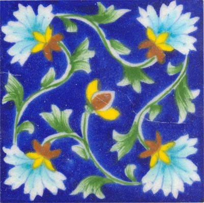 Luxury Kitchen Backsplash Floral Leafy Design Blue Pottery Tile