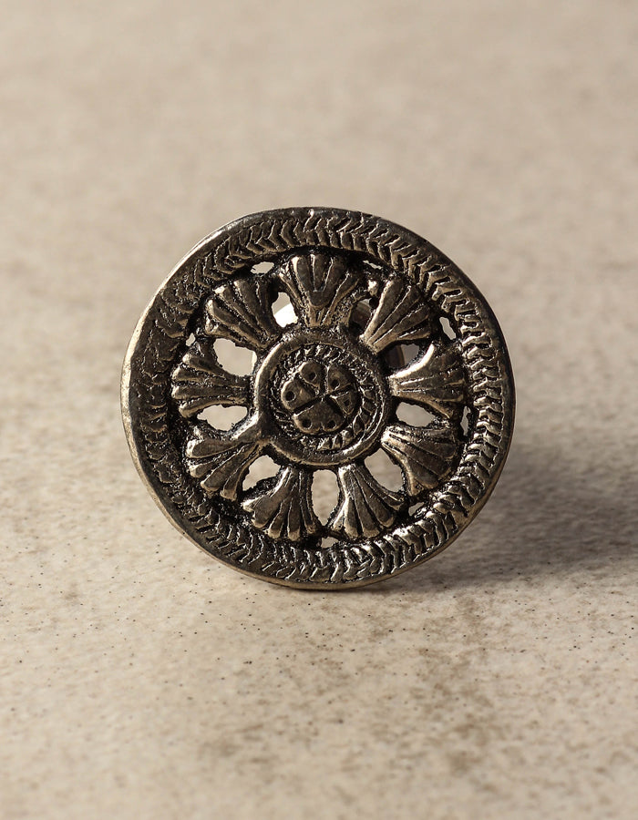 Metal Knob 03  will add color and style to your kitchen and bathroom cabinets! These unique, hand painted ceramic cabinet knobs are 1.5" in diameter and includes screws for installation. Delivery time is normally 5 to 7 business days.  Minimum order of three knobs - mix and match.