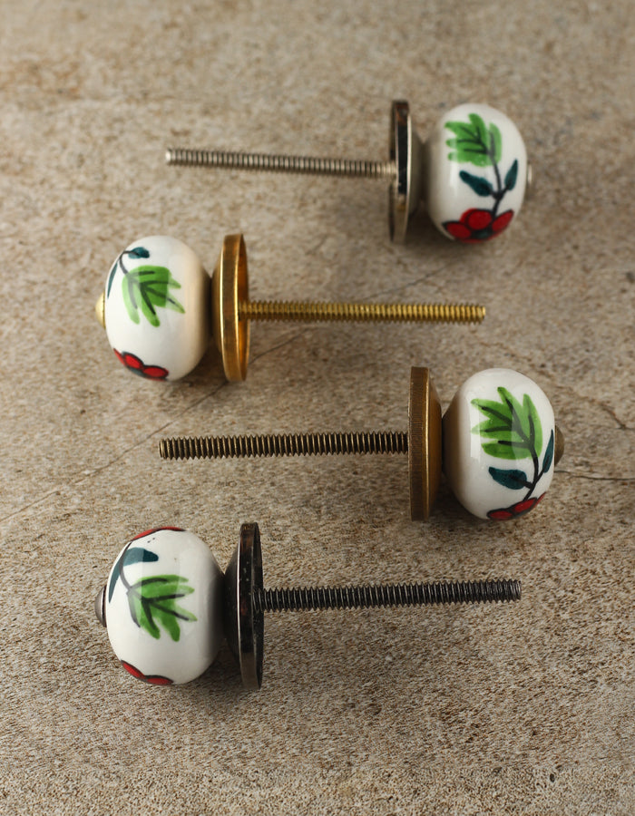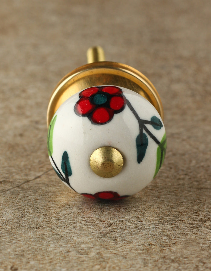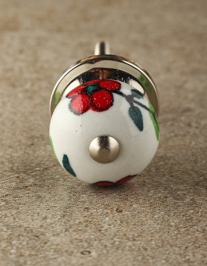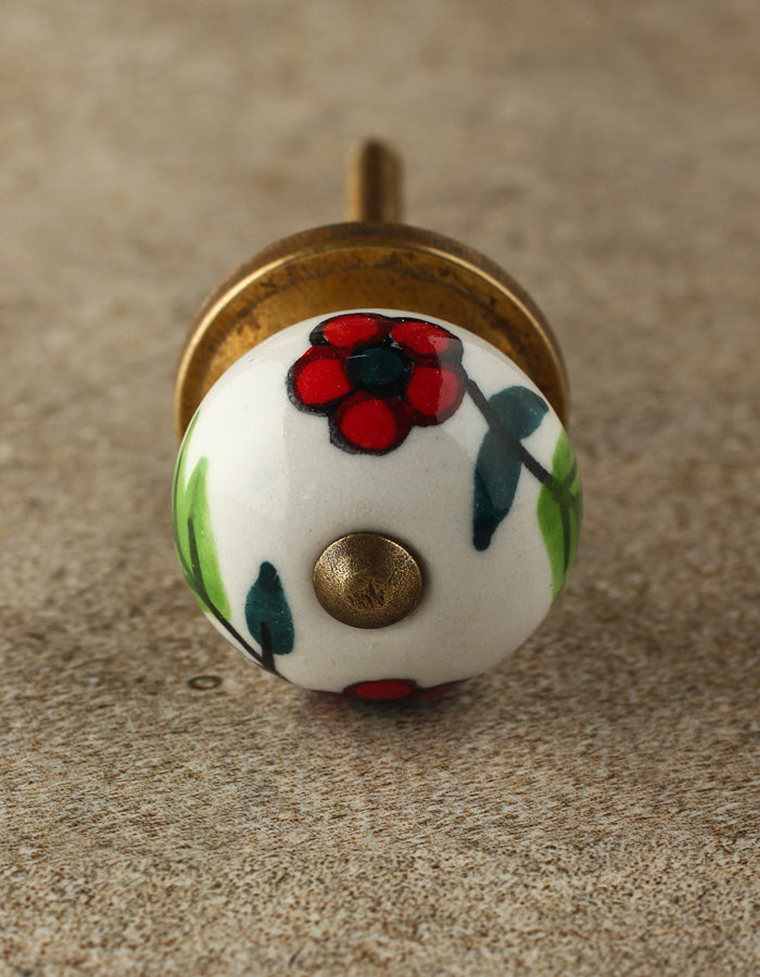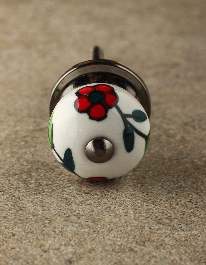 Multicolor Print On White Ceramic Kitchen Cabinet Knob