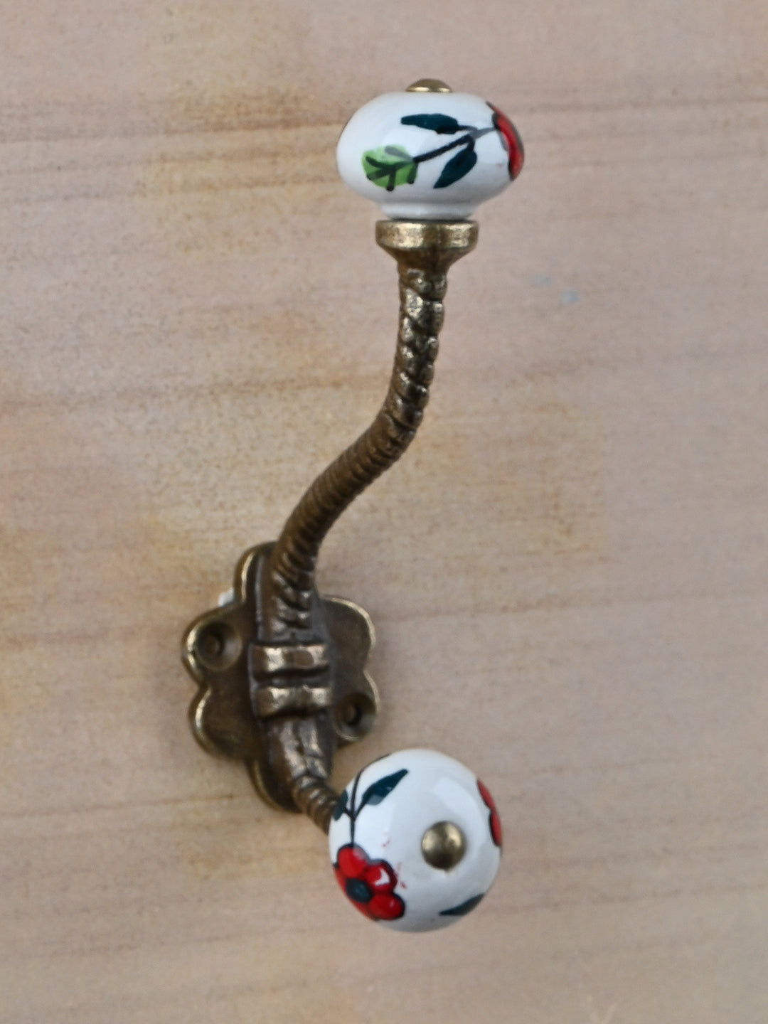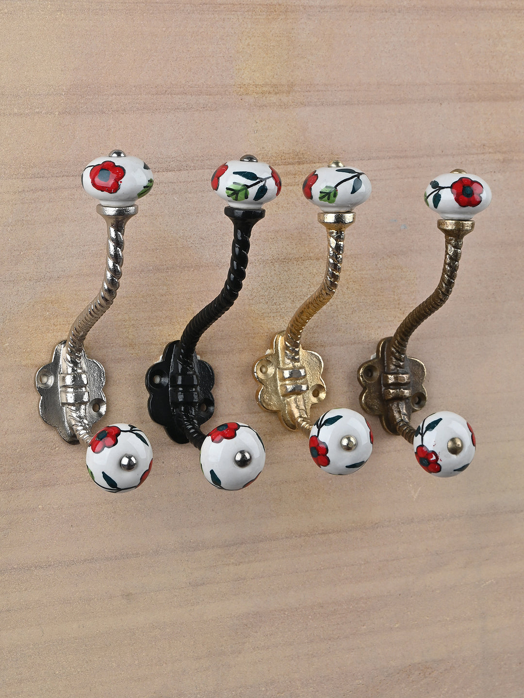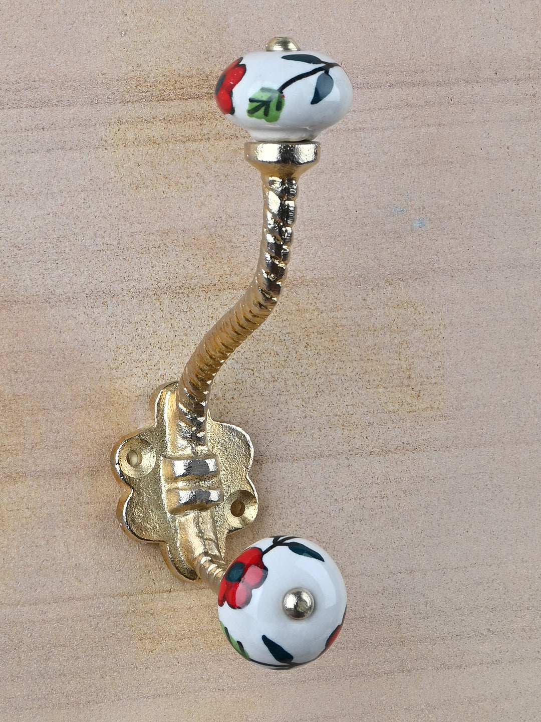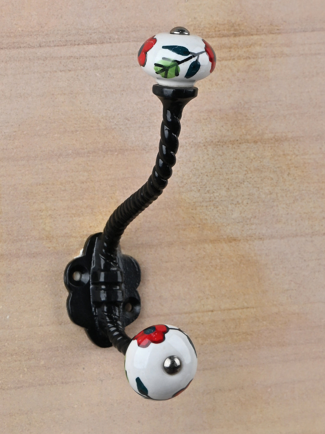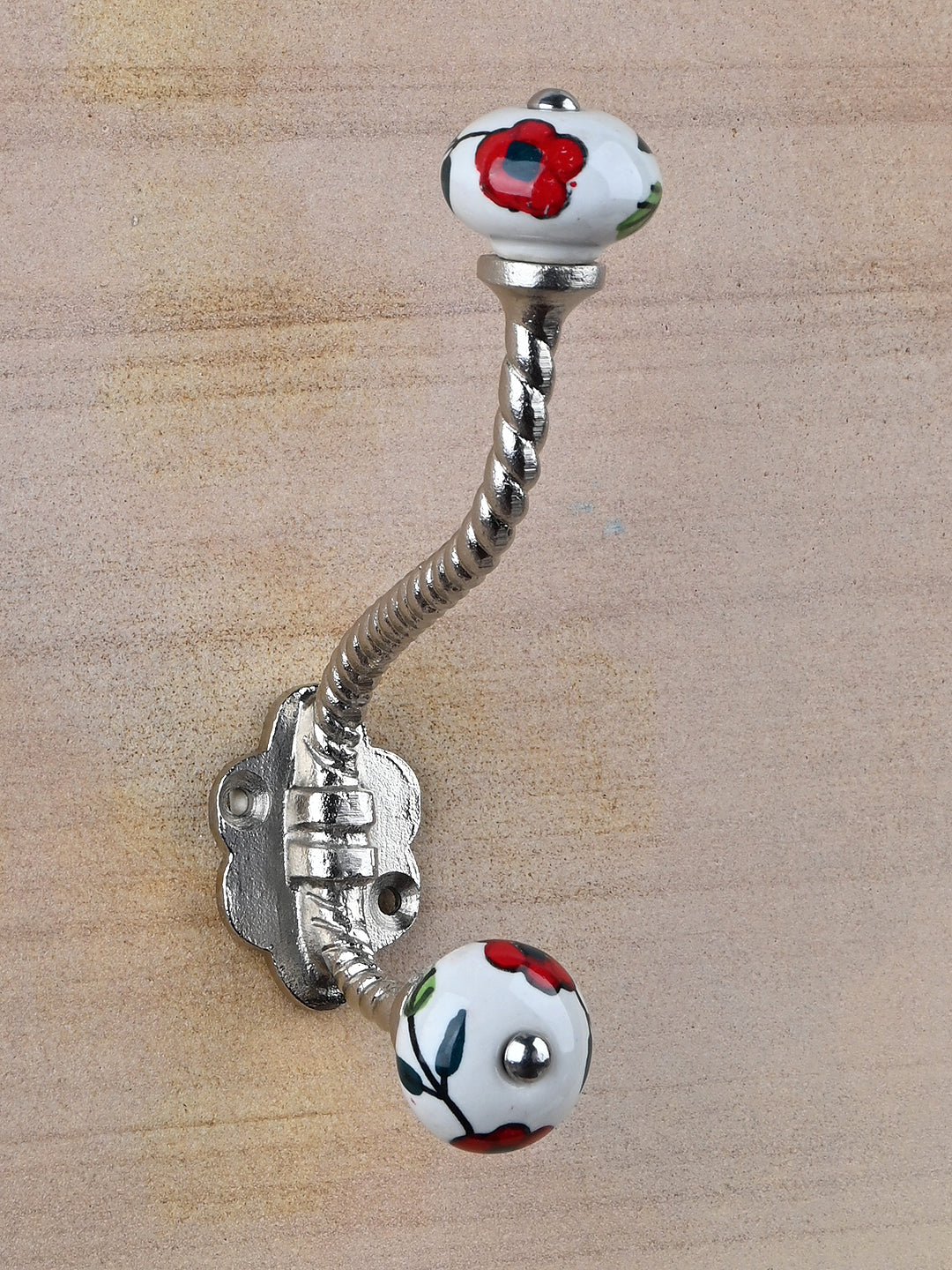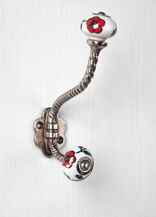Multicolor Print On White Ceramic Knob With Metal Wall Hanger