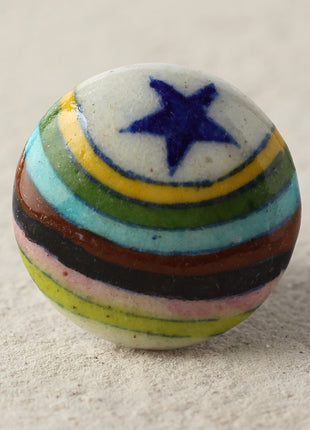 Multicolor Rainbow With Blue Star Ceramic Blue Pottery Drawer Knob
