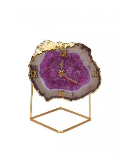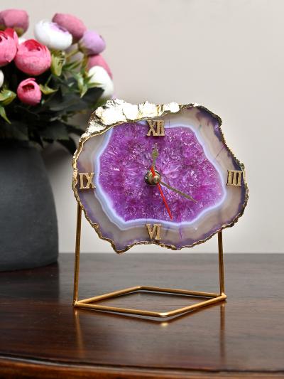 Natural Handmade Agate Stone Desk Clock with Metal Stand, Office Decor, Home Office Clock,Boho Decor,Rock Enthusiast Gift,Geologist Gift