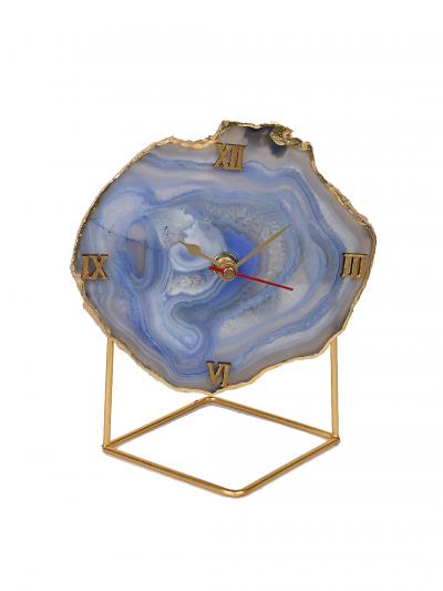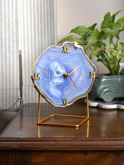Natural Handmade Agate Stone Desk Clock with Metal Stand, Office Decor, Home Office Clock,Boho Decor,Rock Enthusiast Gift,Geologist Gift