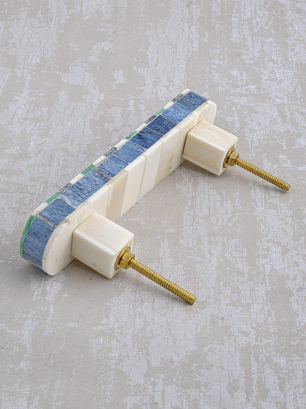 Natural Handmade Horn Bone Drawer Pull-Green, White, Blue