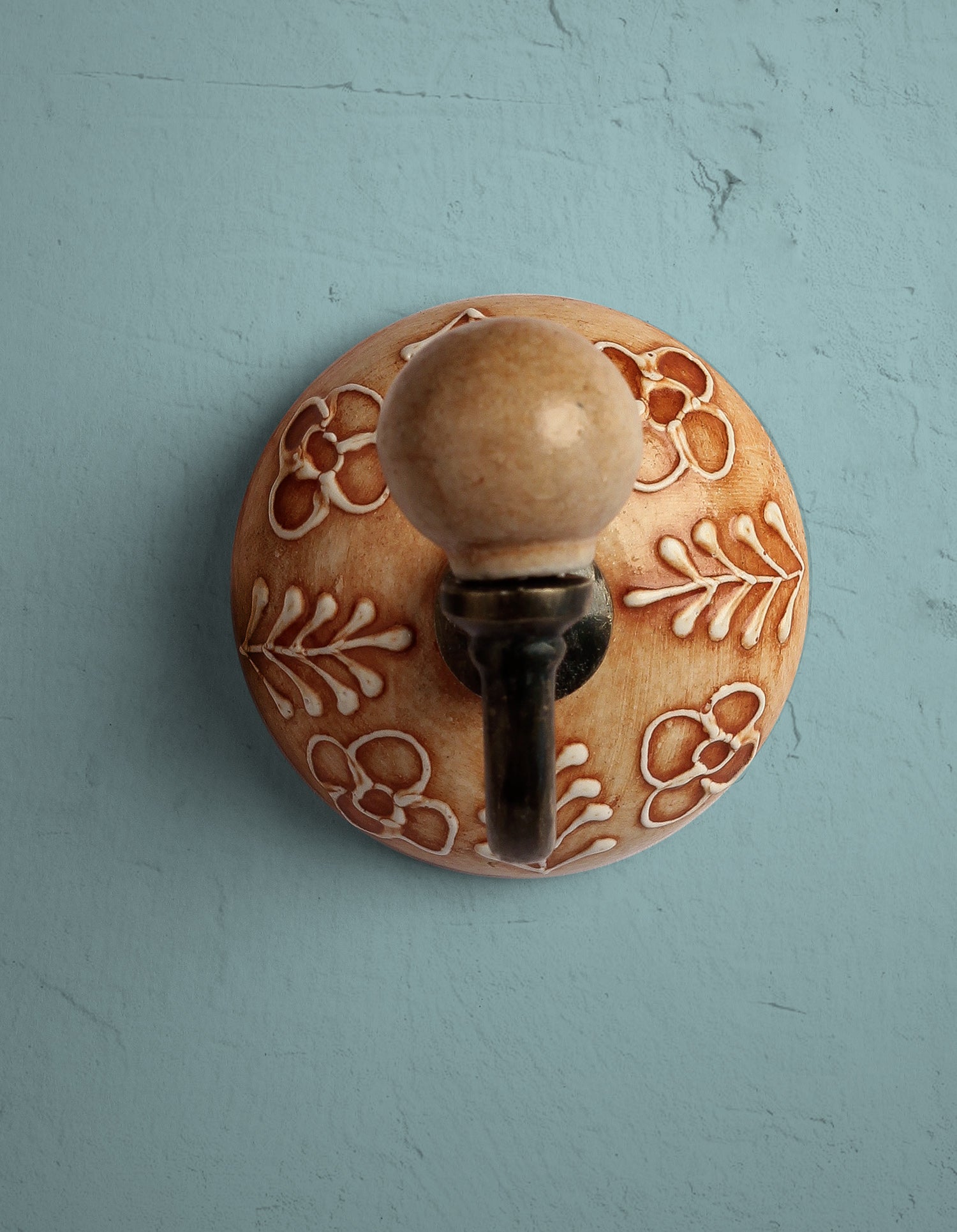 Orange Embossed Ceramic Round Wall Hook