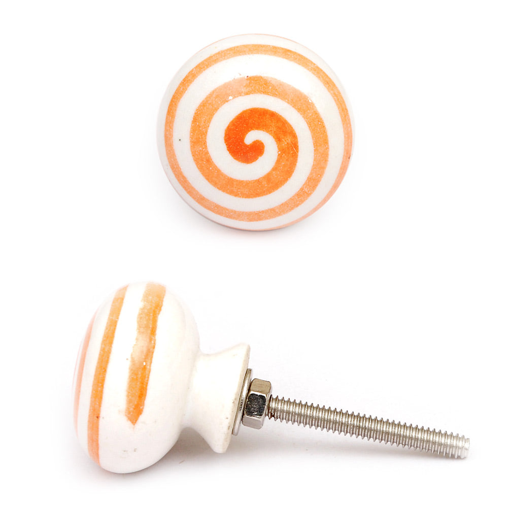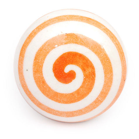 Orange Spiral Ceramic Dresser Cabinet Knob