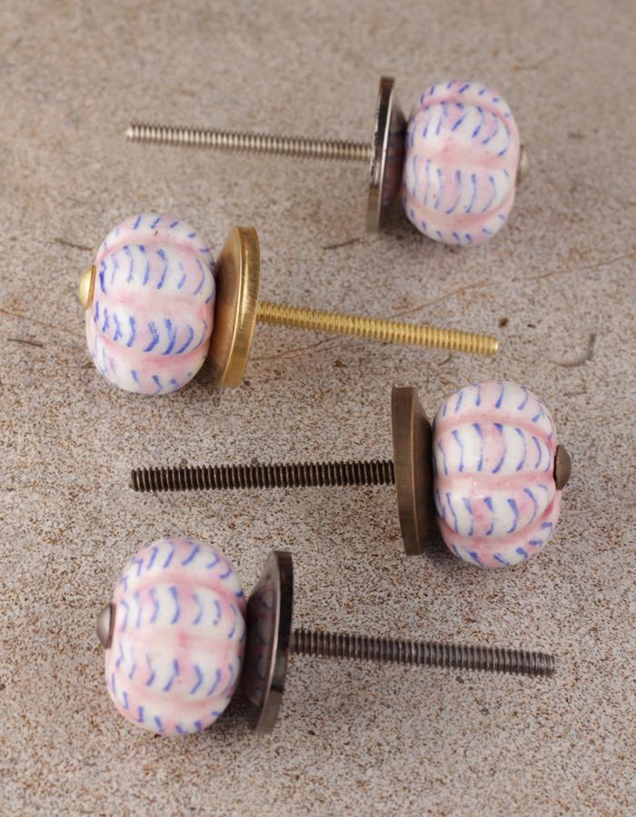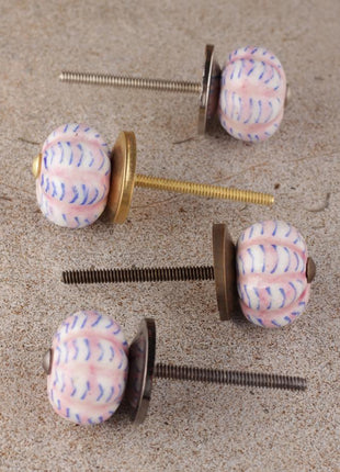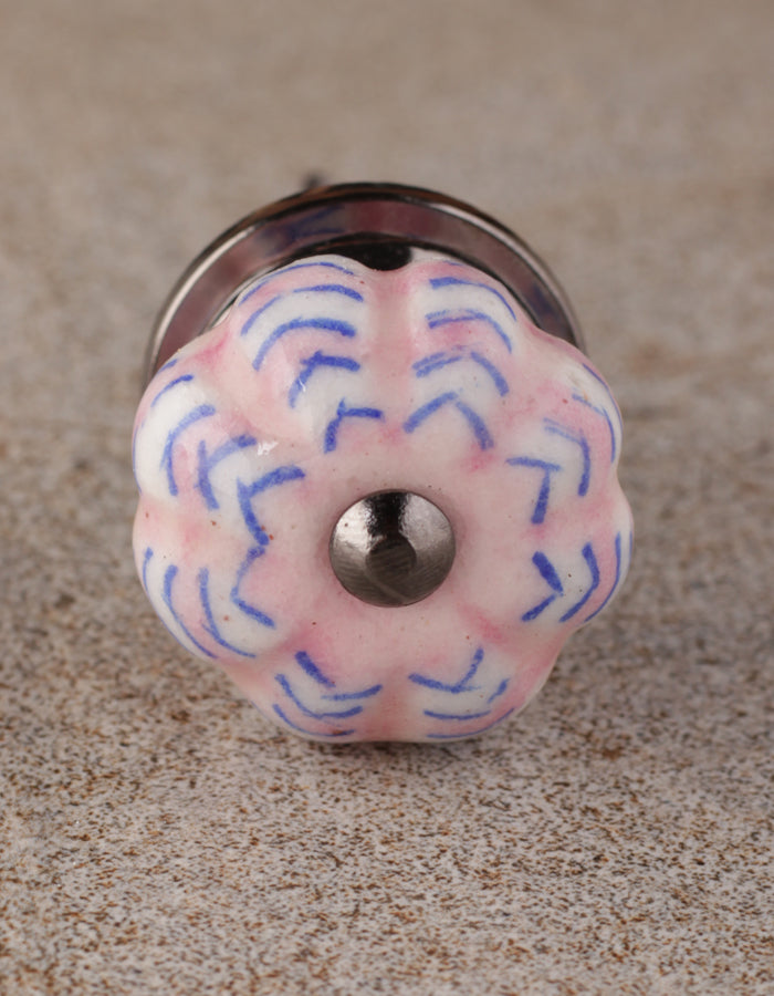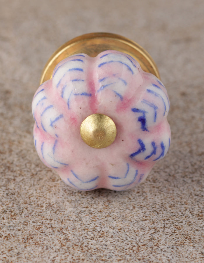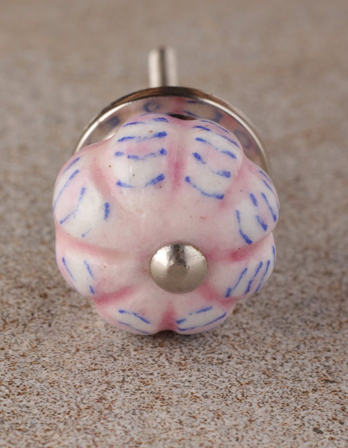 Pink Ceramic Melon Shaped Bathroom Knob With White Design