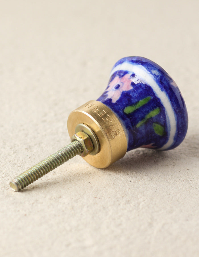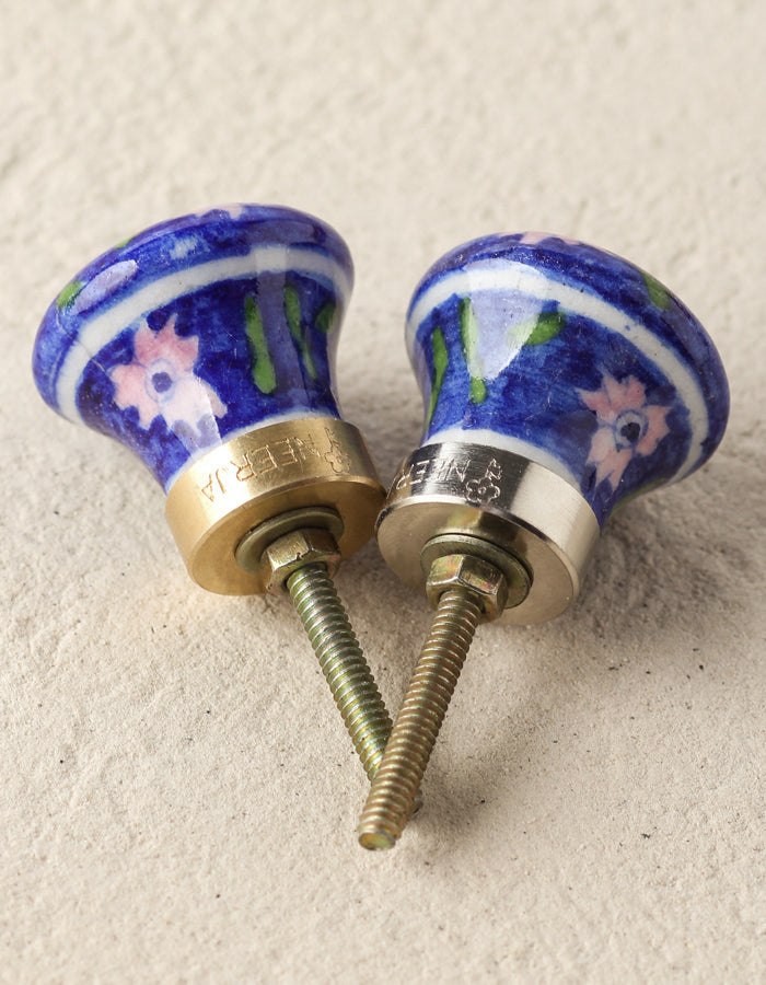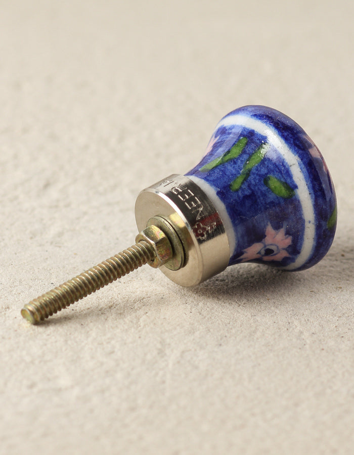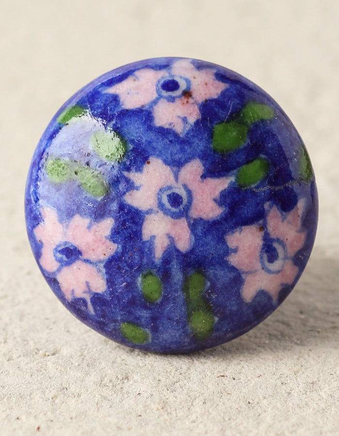 Pink Flower On Blue Base Ceramic Blue Pottery Kitchen Cabinet Knob