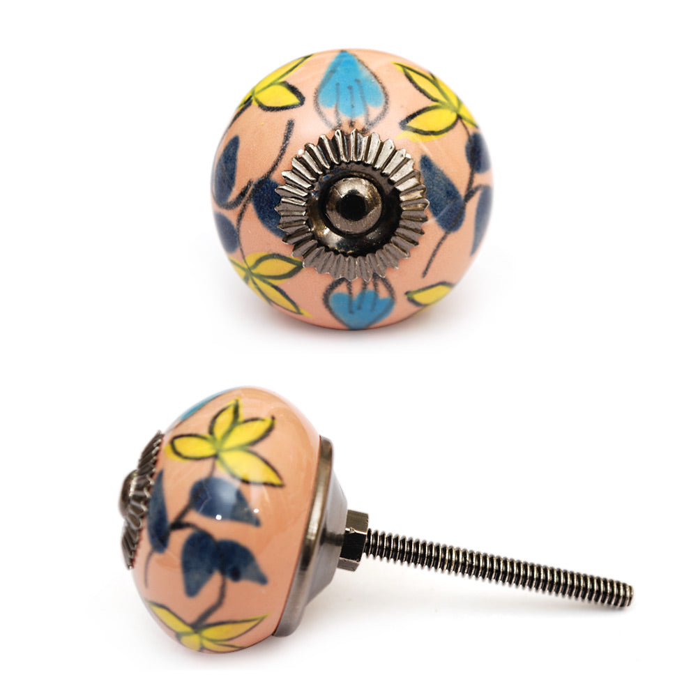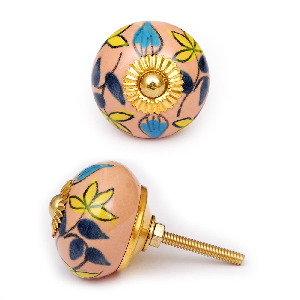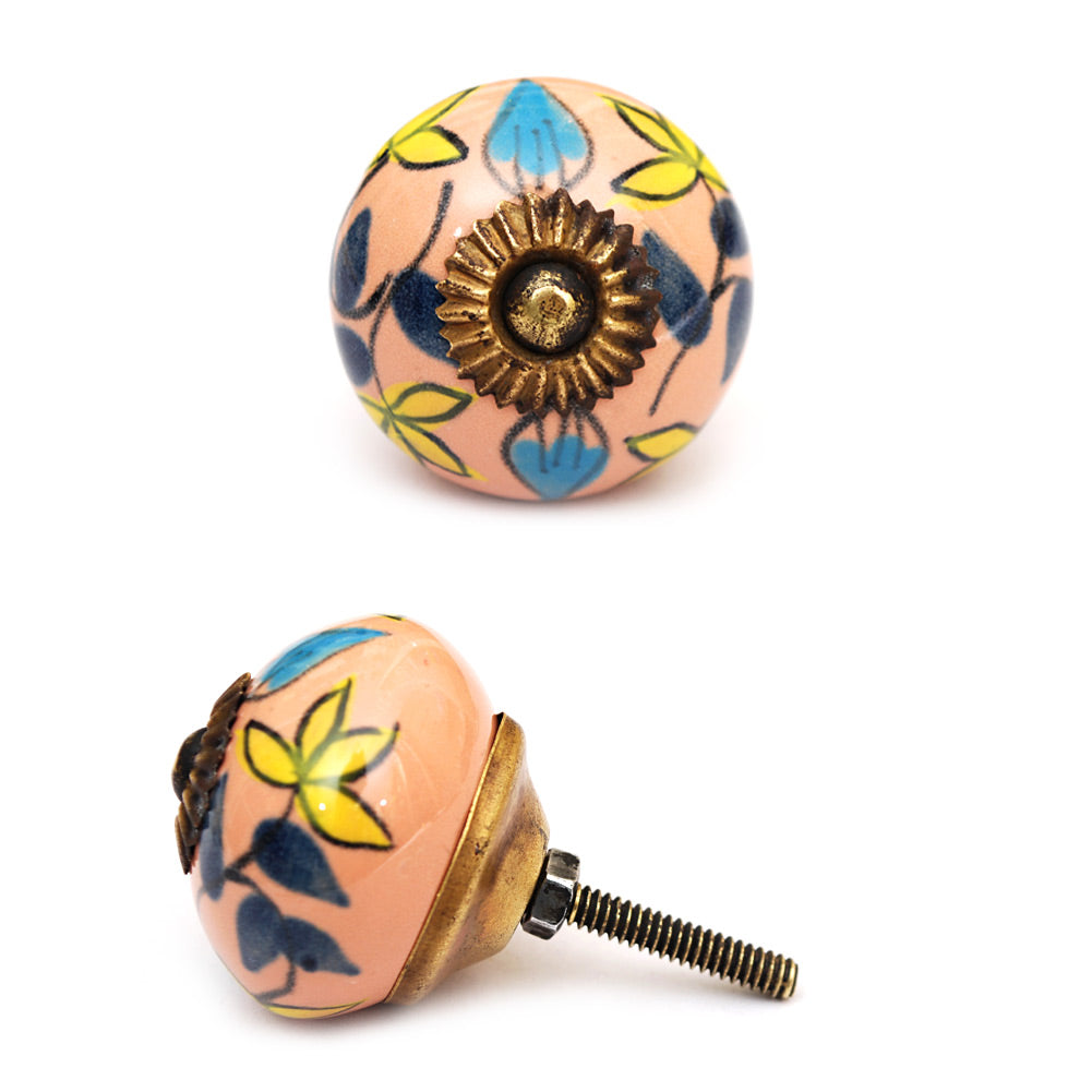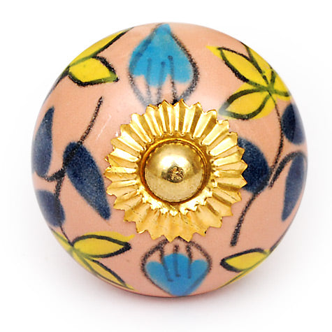 Pink Round Dresser Cabinet Knob With Multicolor Print