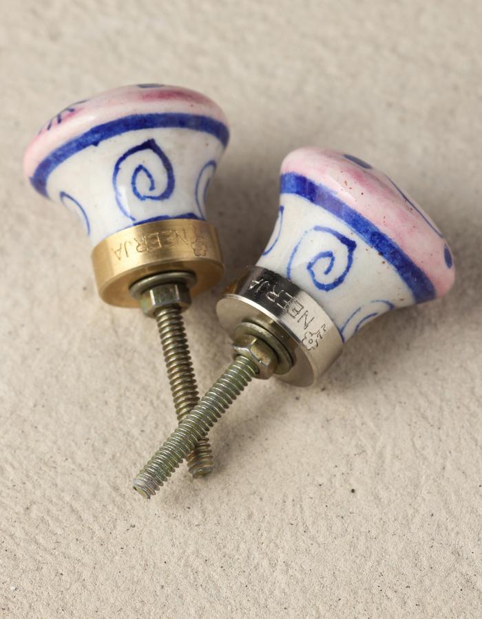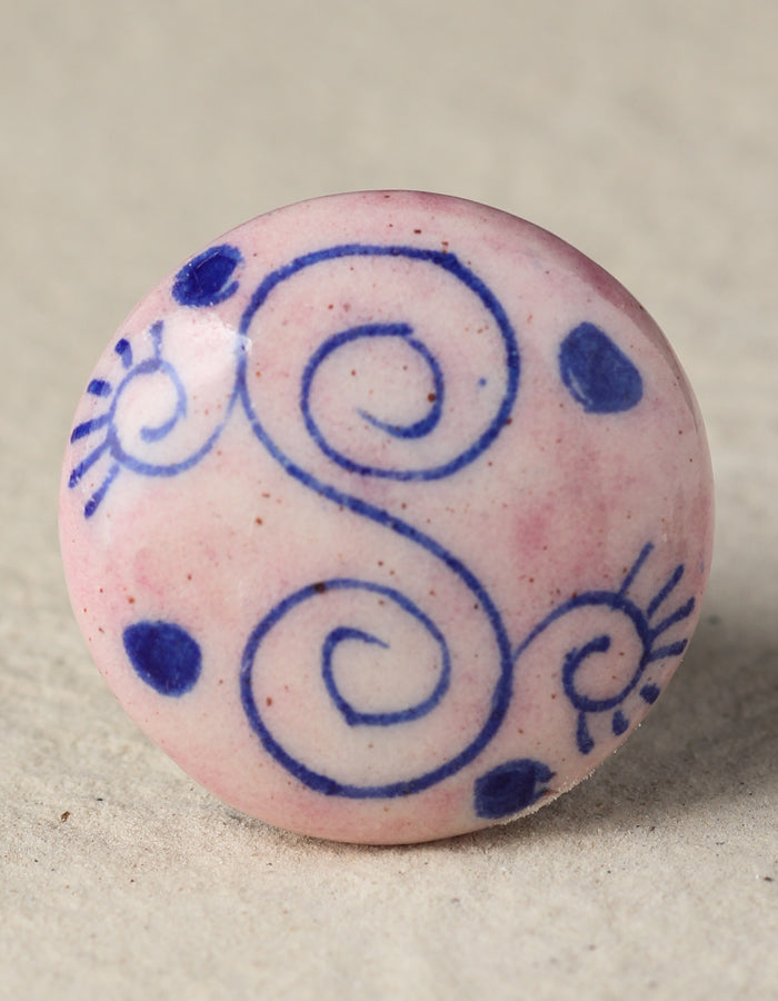 Pink Round Spiral S Ceramic Blue Pottery Drawer Knob