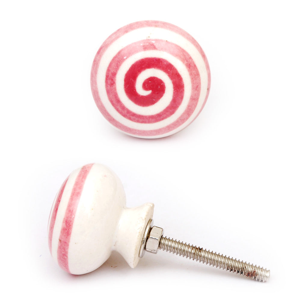 Pink Spiral Ceramic Dresser Cabinet Knob