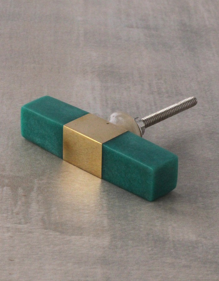 Rectangular Teal Green Resin Kitchen Cabinet Knob