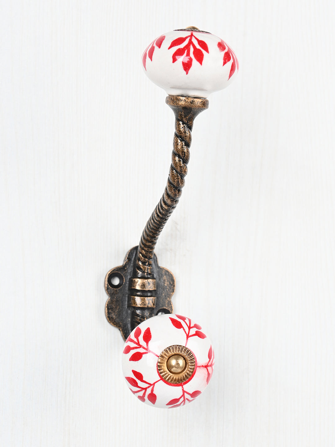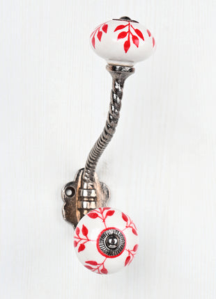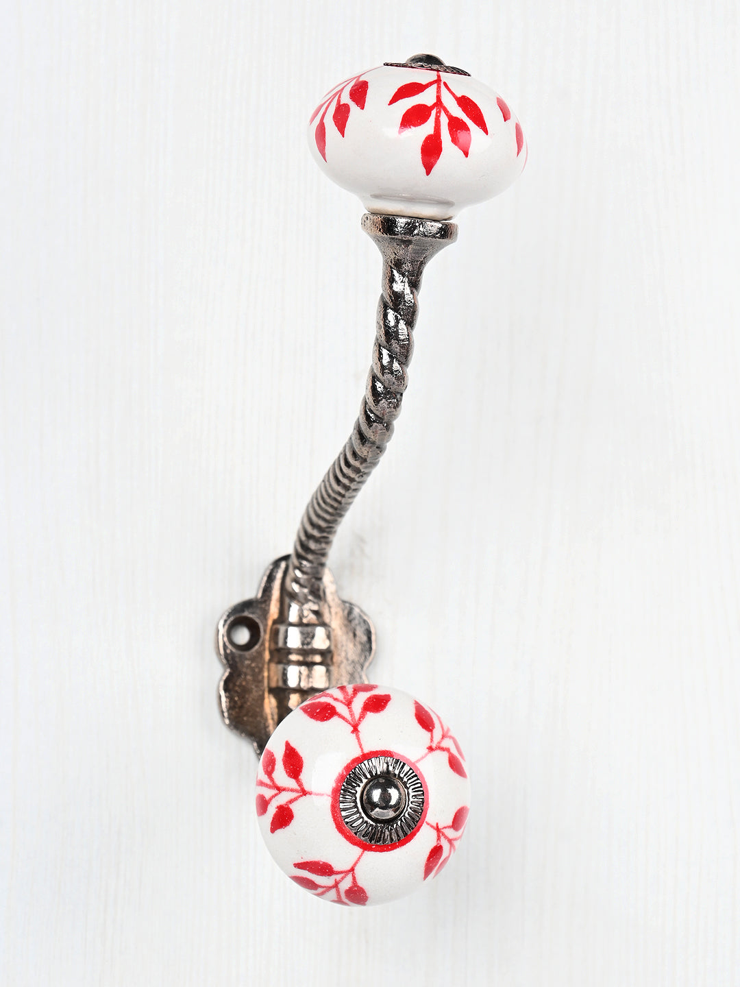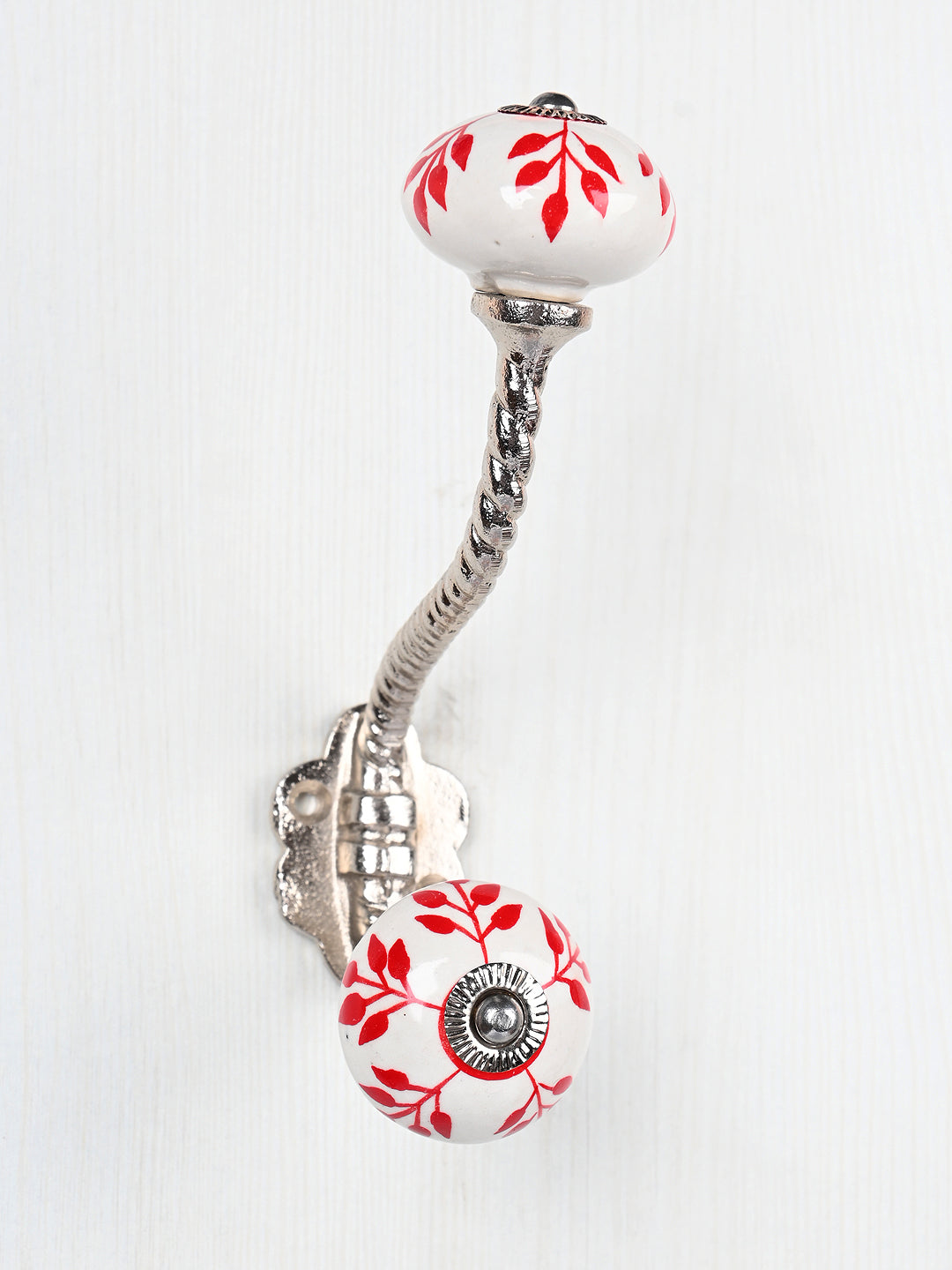 Red Design On White Ceramic Knob With Metal Wall Hanger
