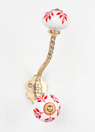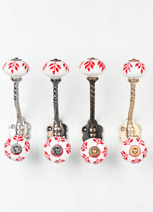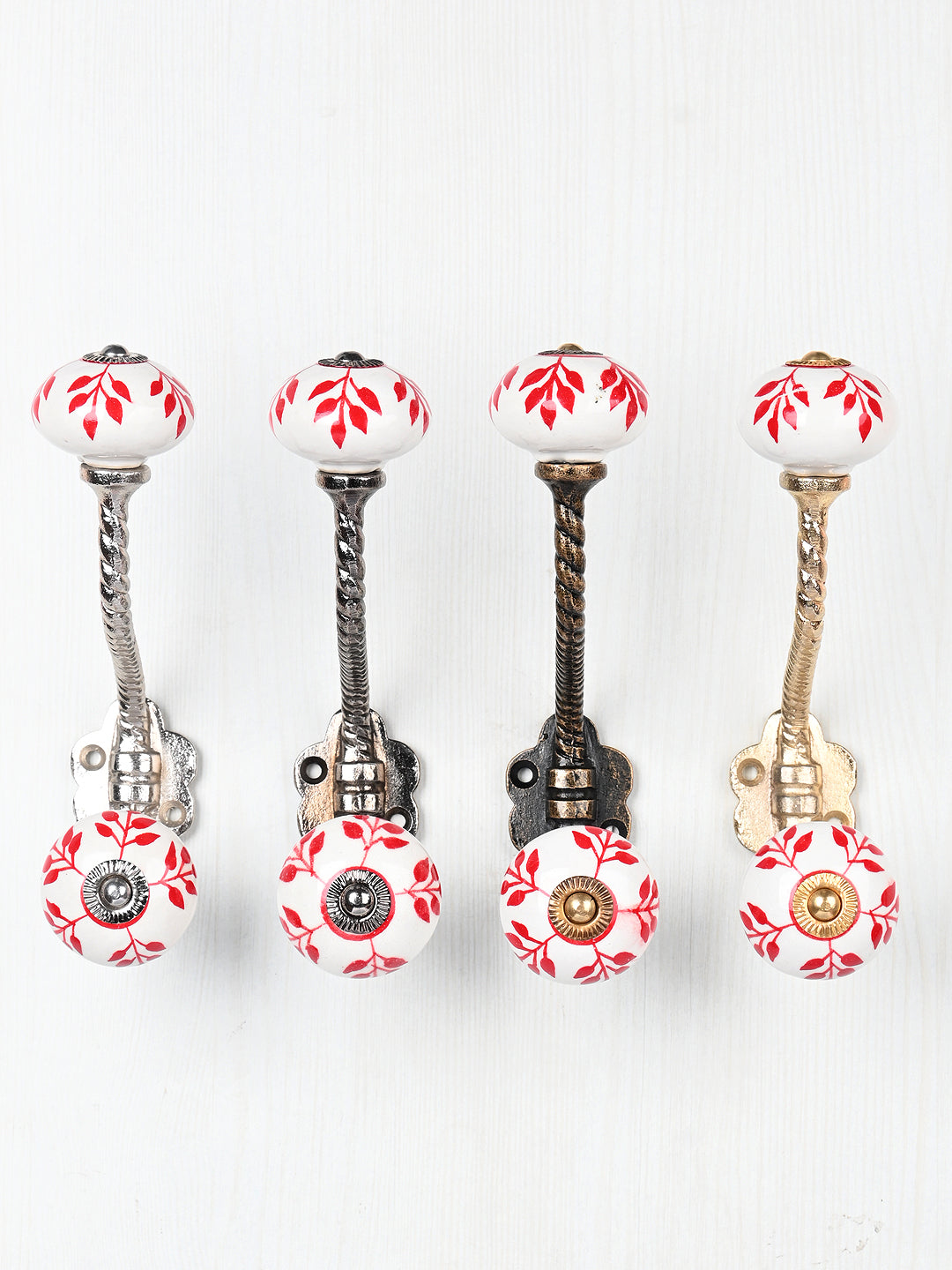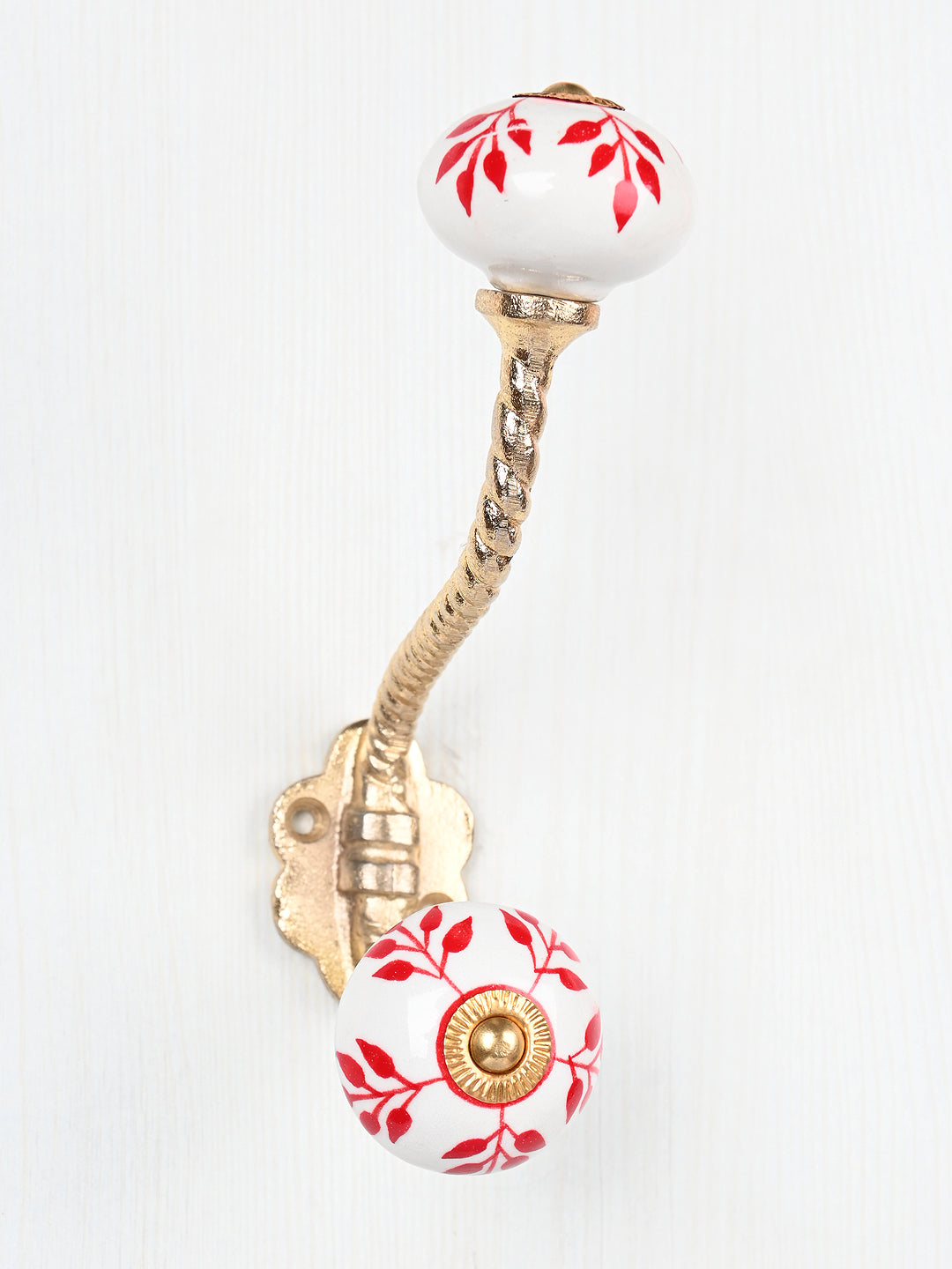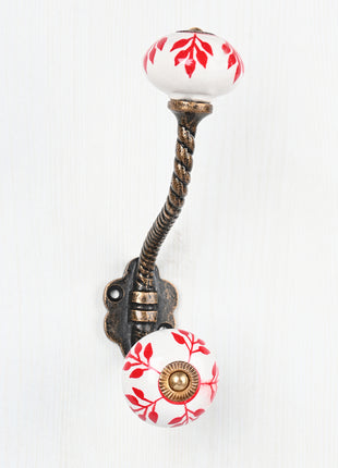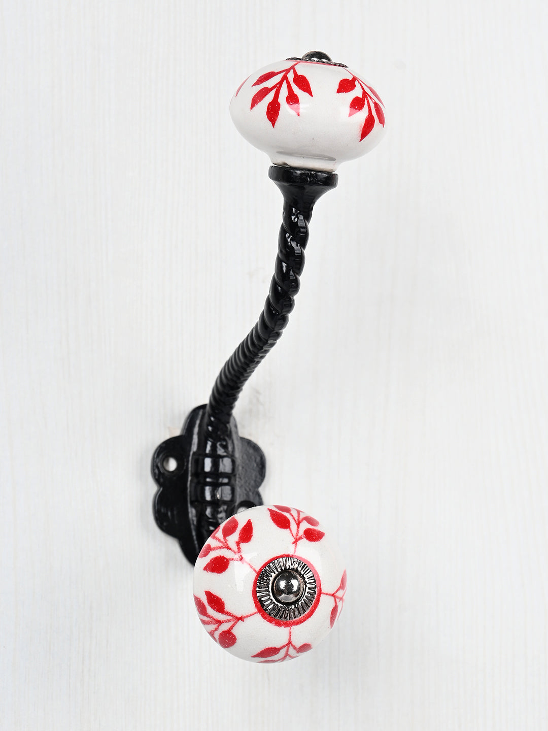 Red Design On White Ceramic Knob With Metal Wall Hanger