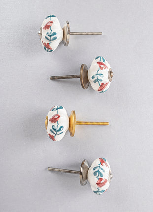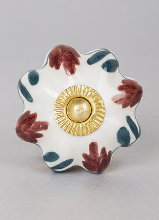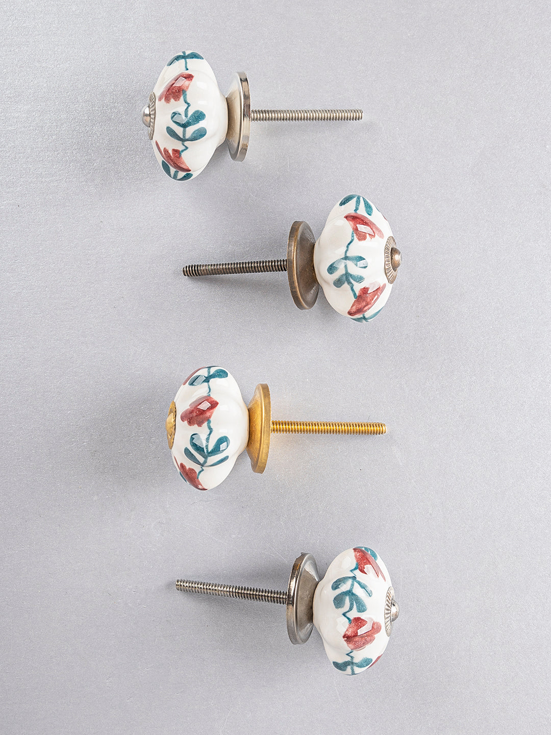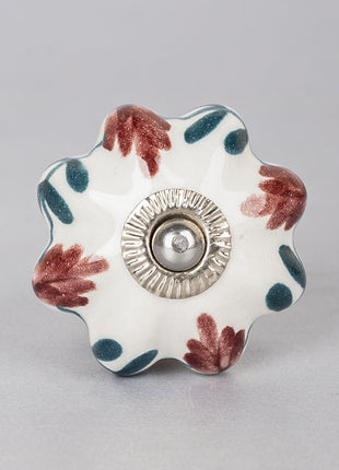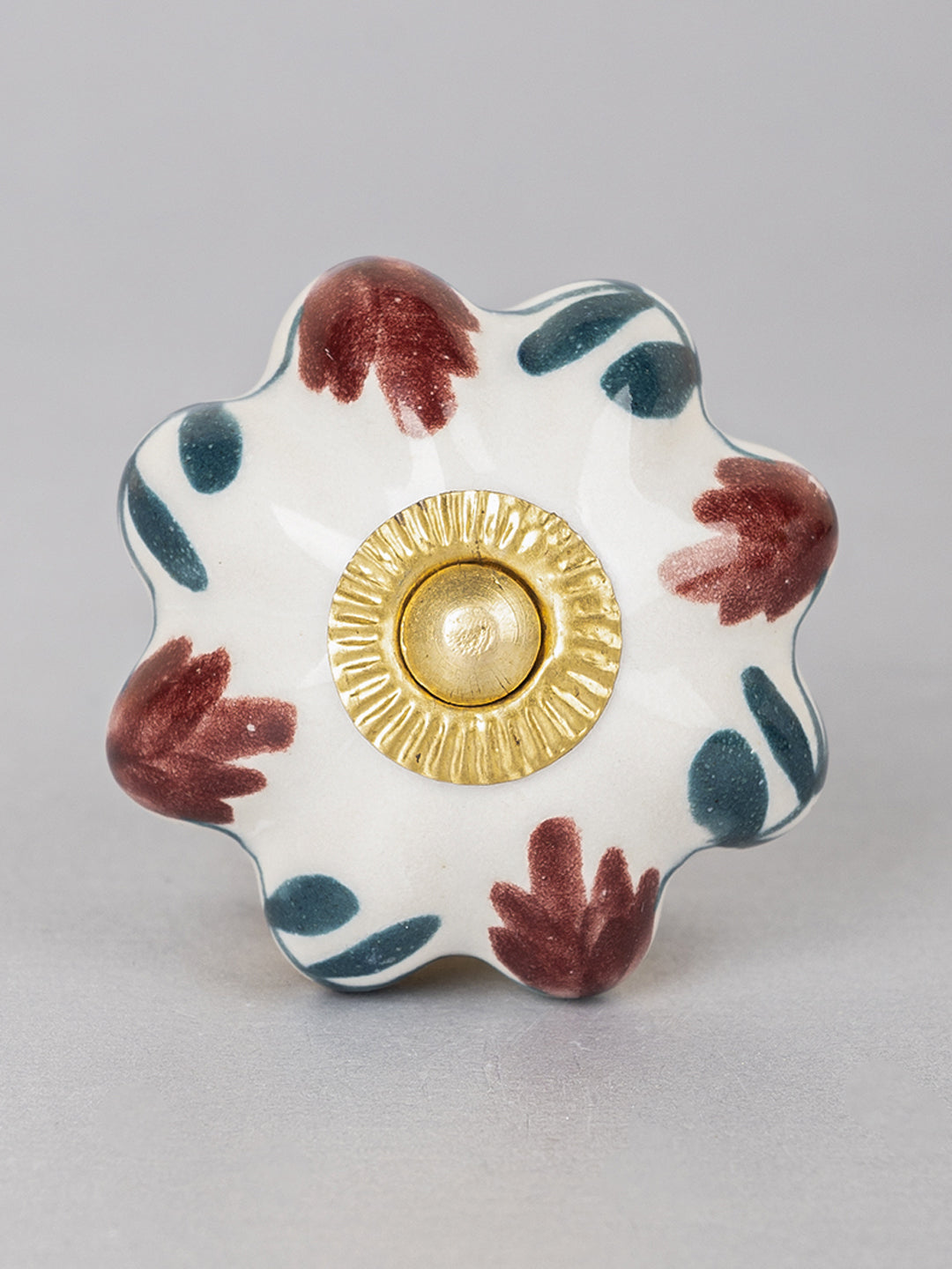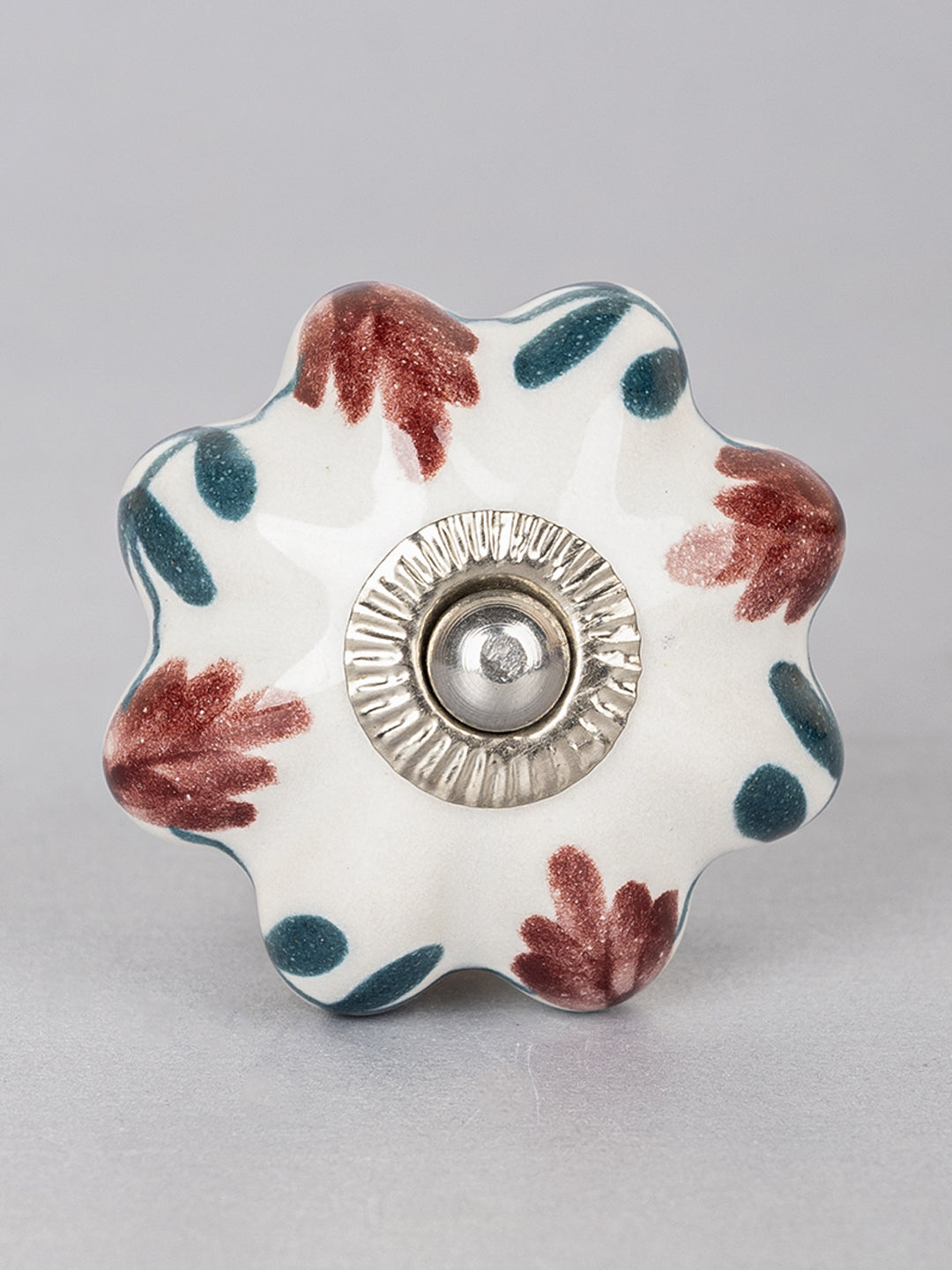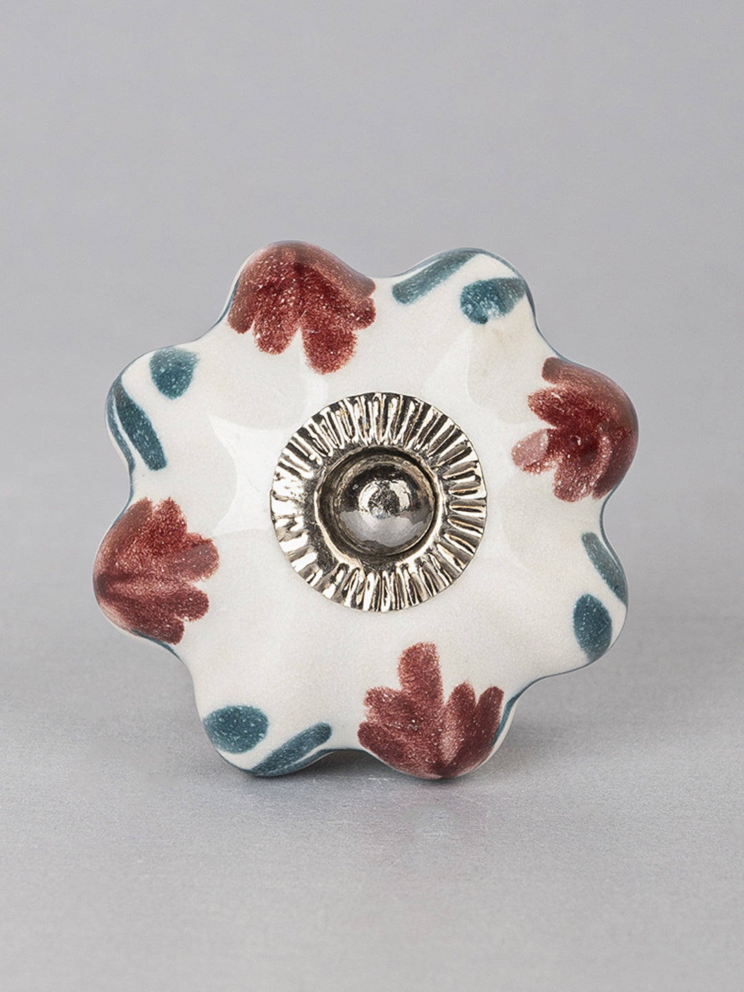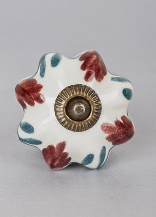 Red Flower On White Melon Shape Ceramic Cabinet Knob