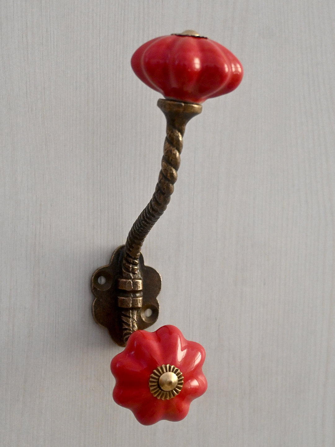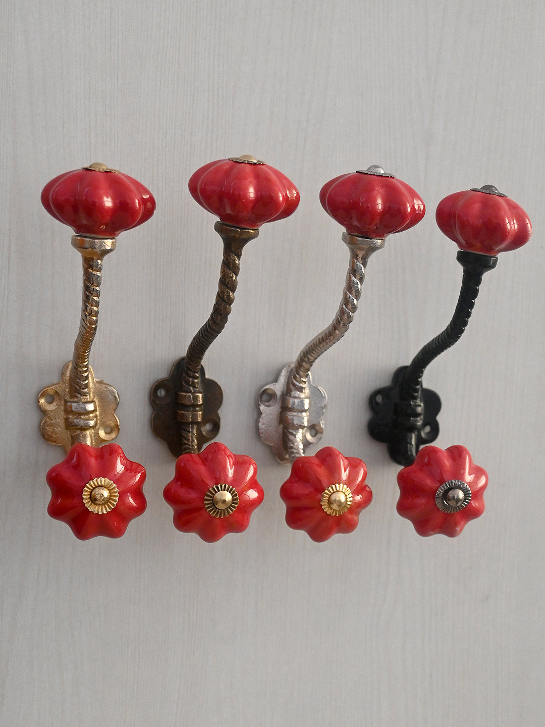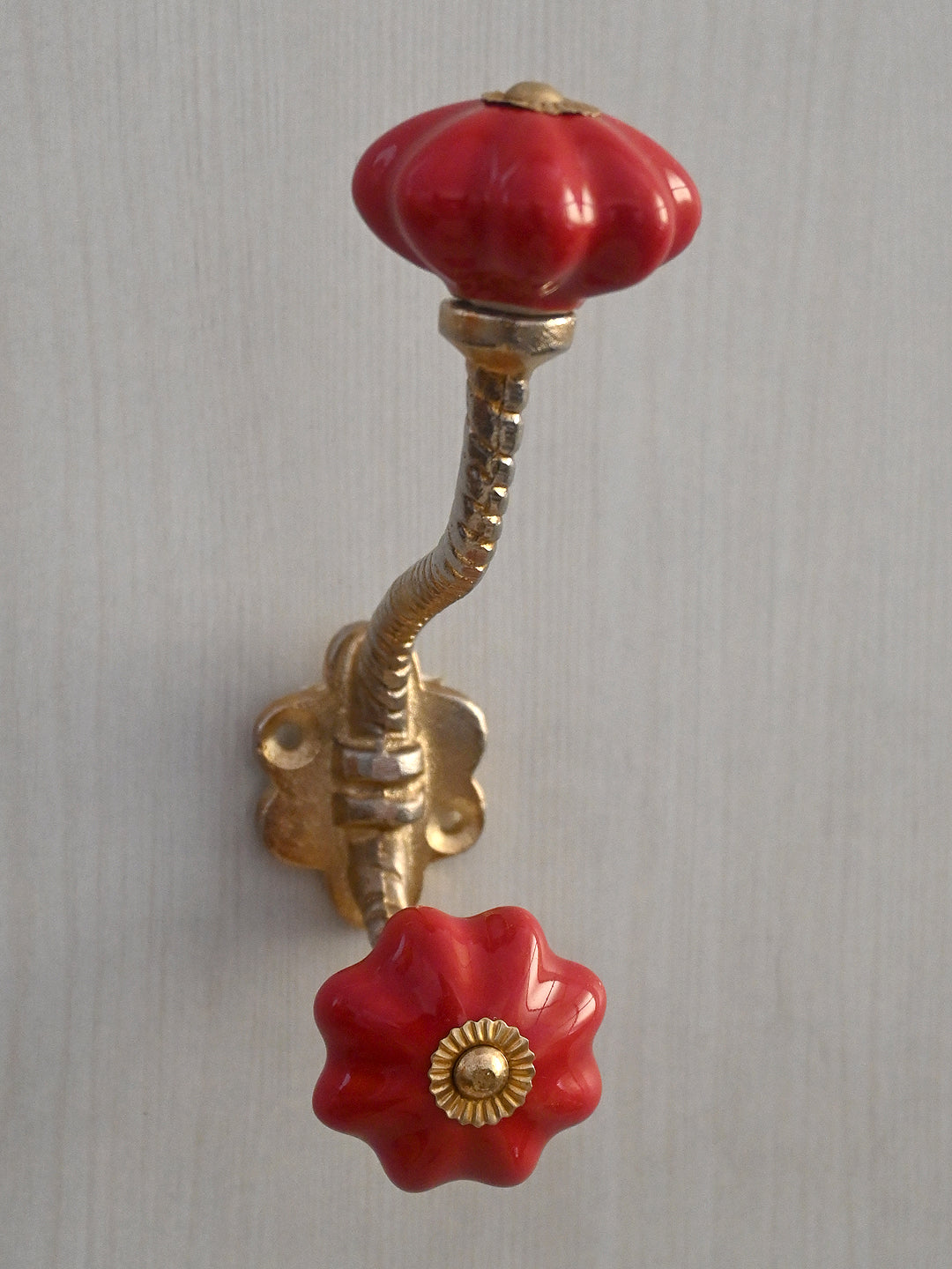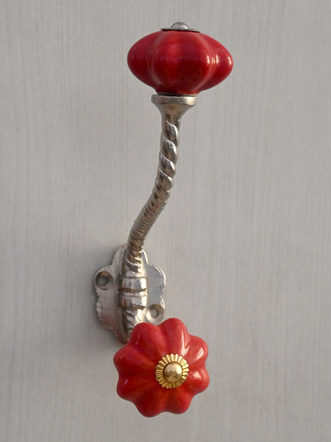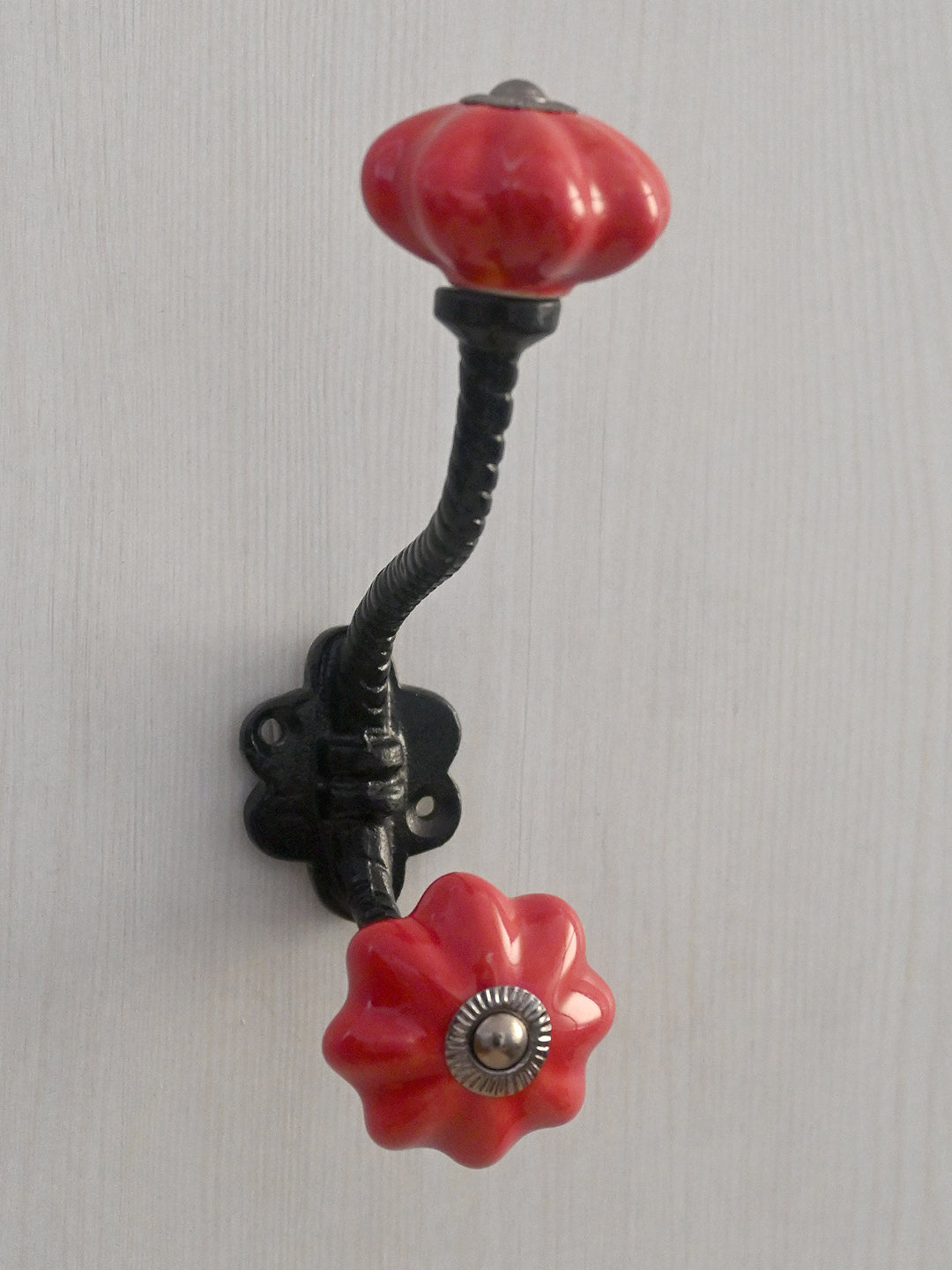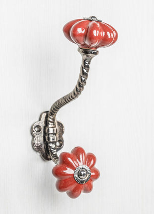 Red Flower Shaped Ceramic Knob With Metal Wall Hanger