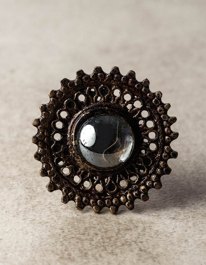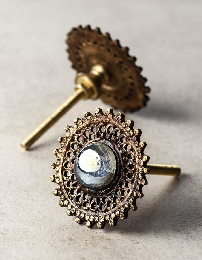 Round Metal Knob with glass Center