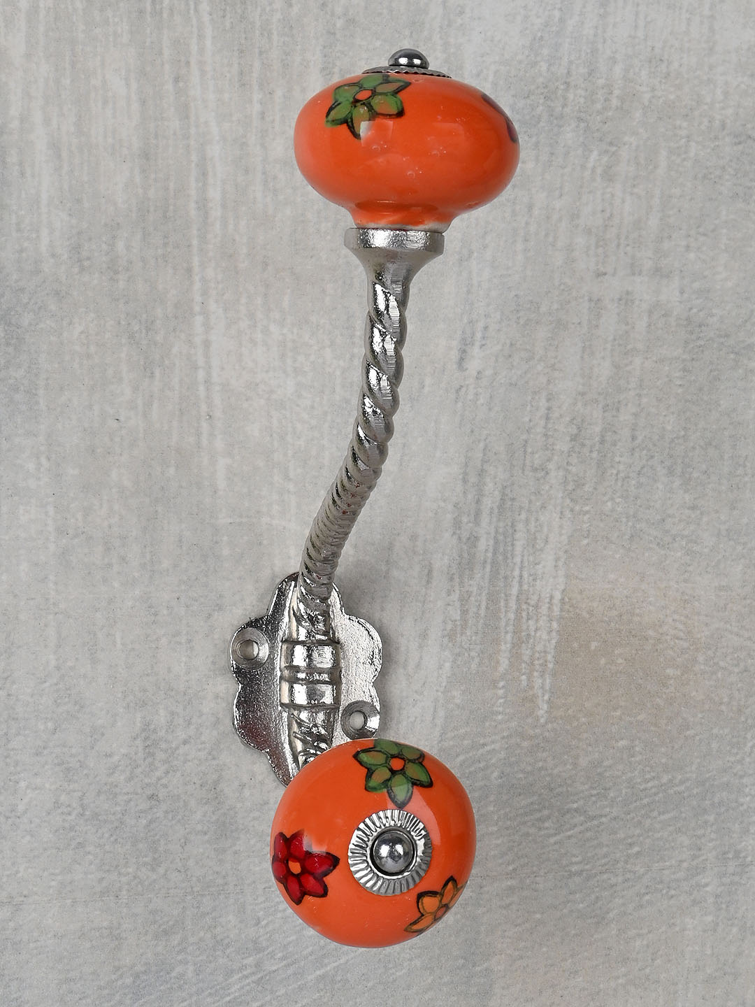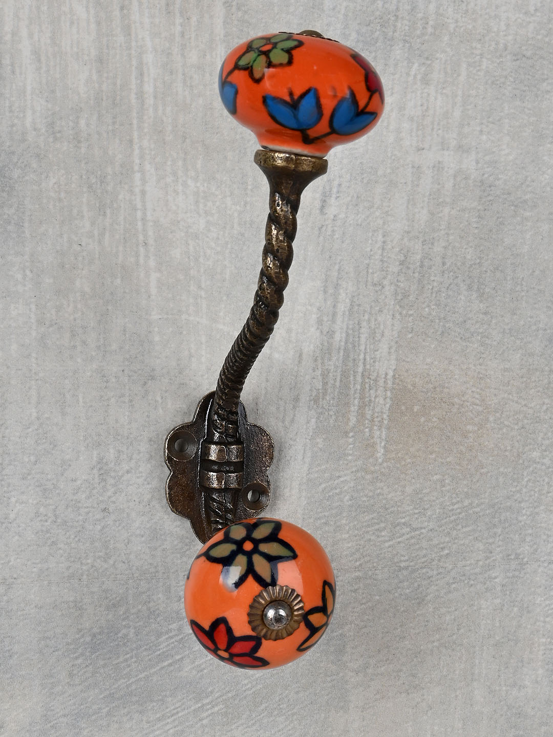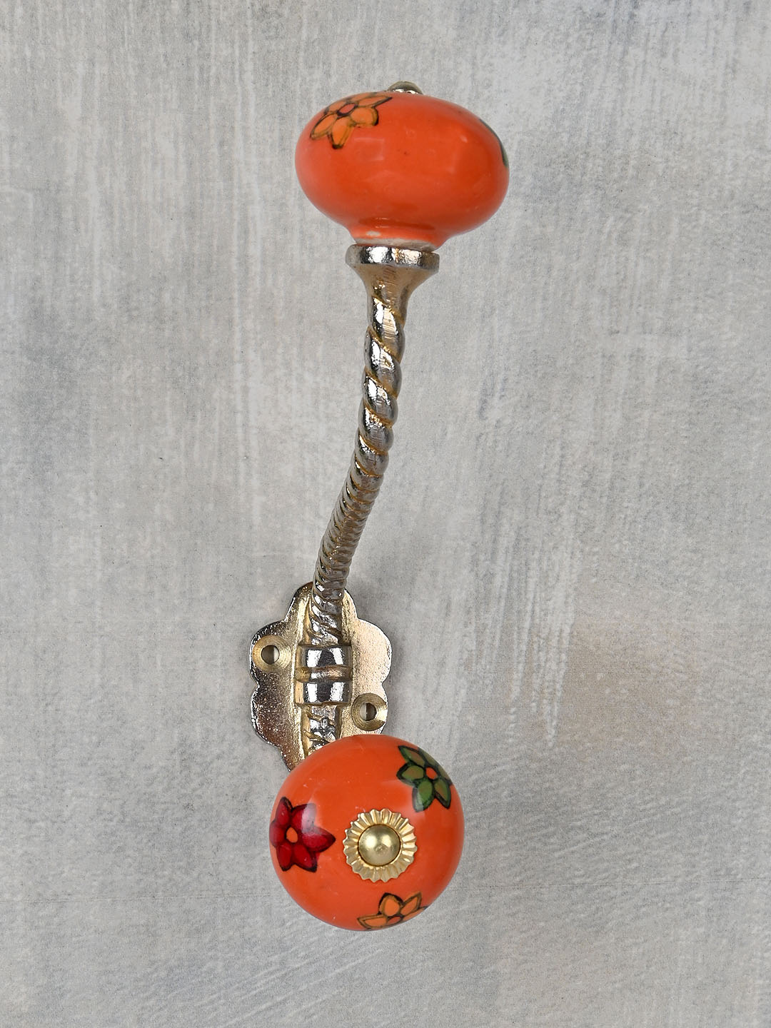 Round Orange Knob Beautifully Hand Painted Flowers With Metal Wall Hanger