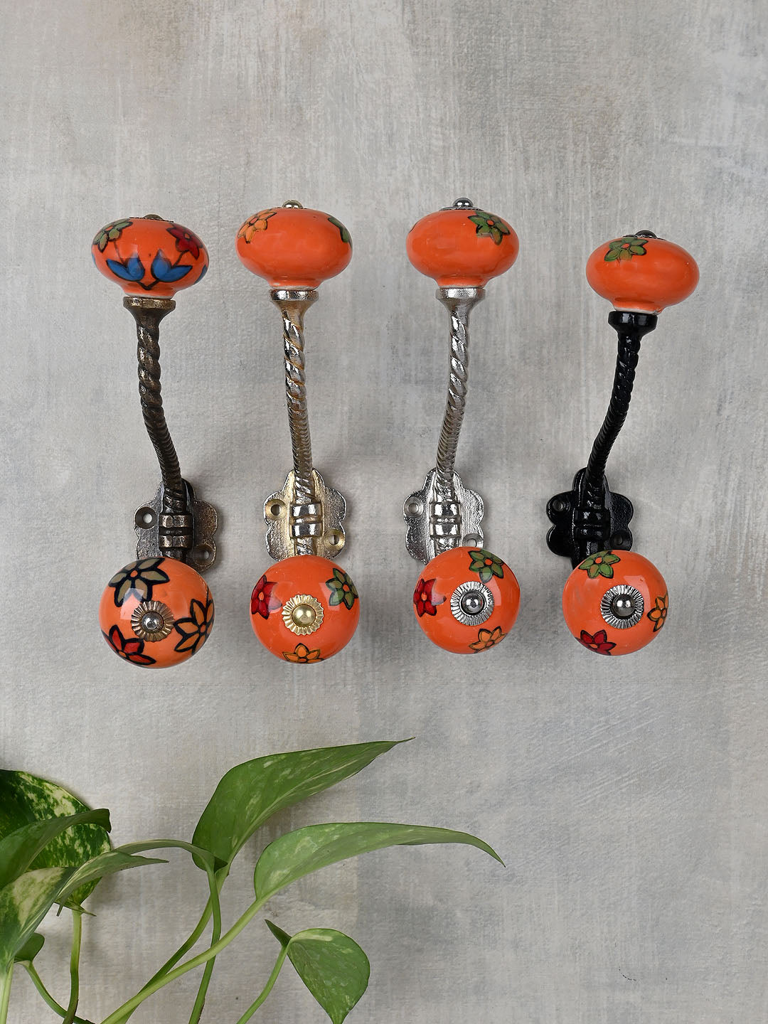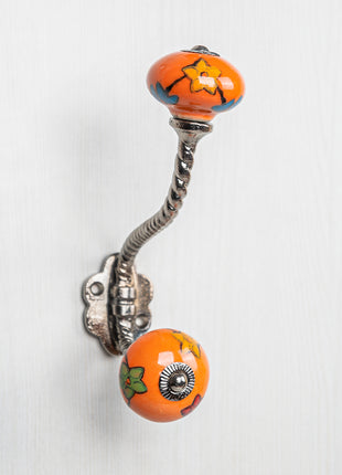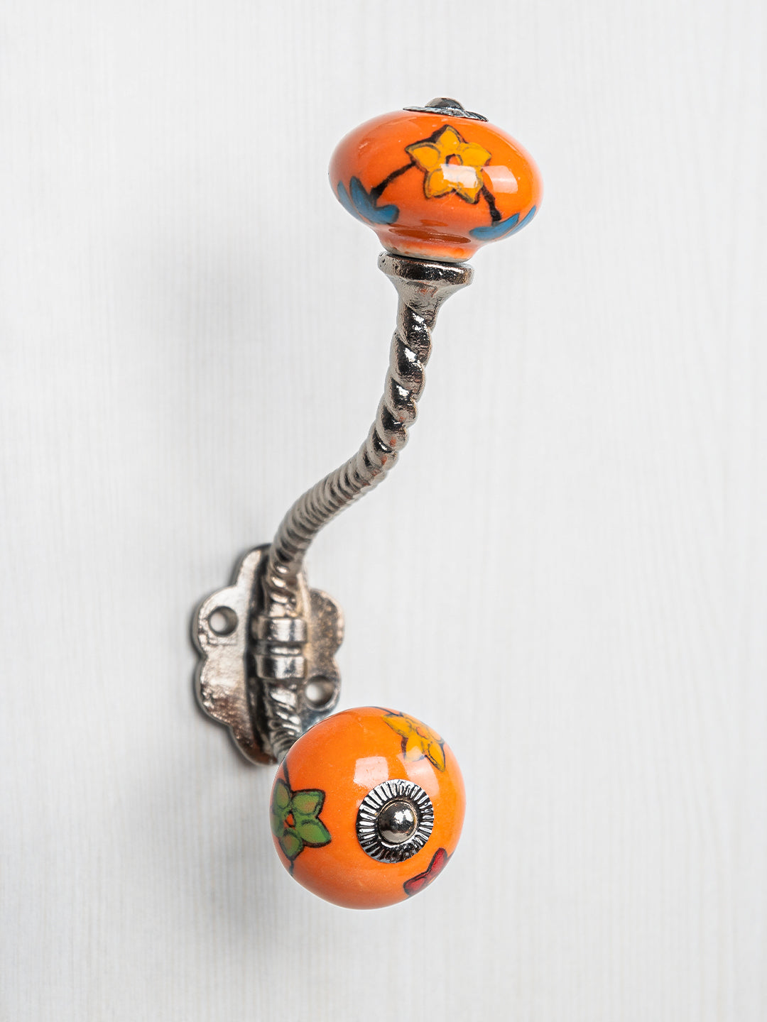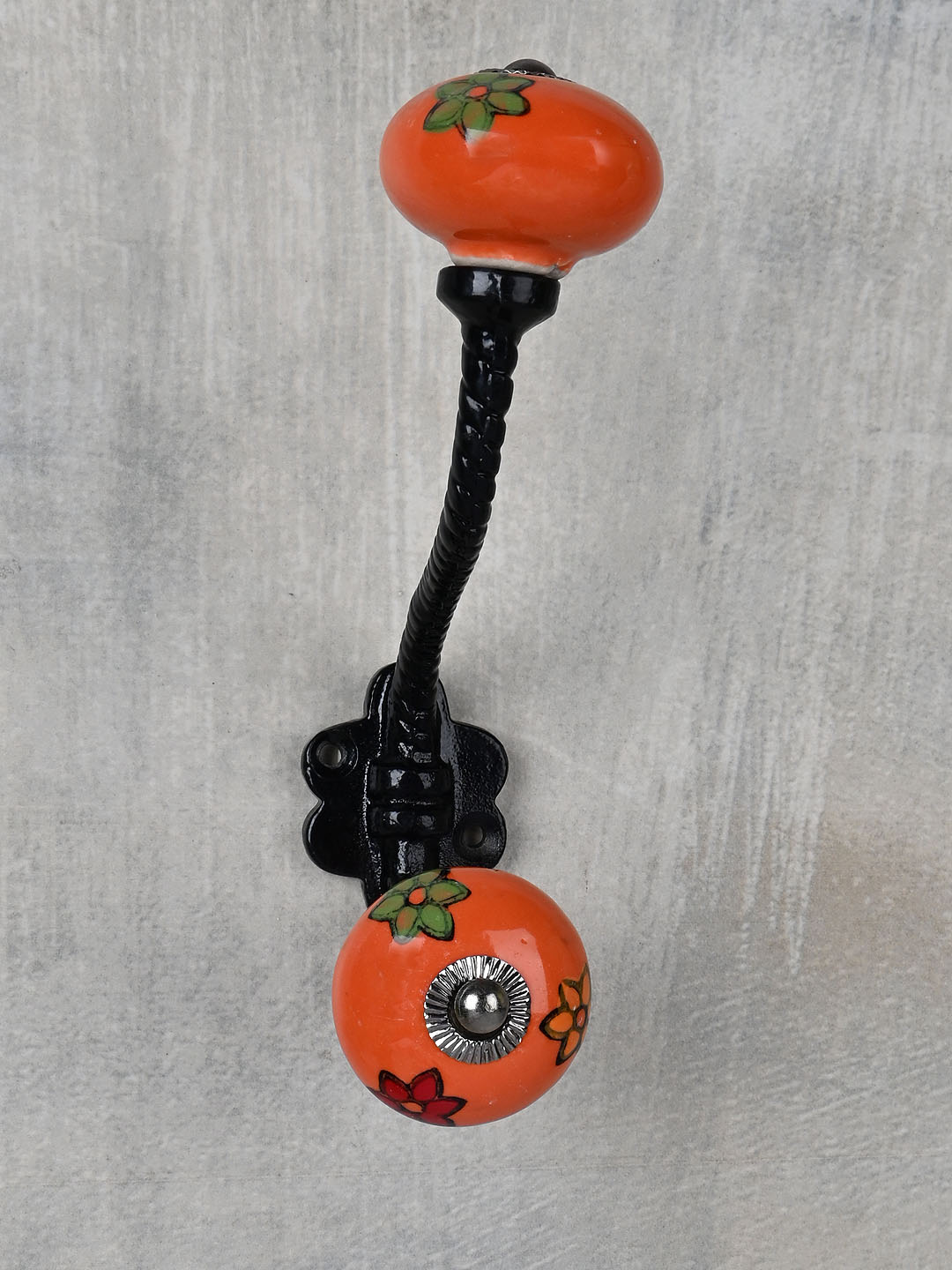 Round Orange Knob Beautifully Hand Painted Flowers With Metal Wall Hanger