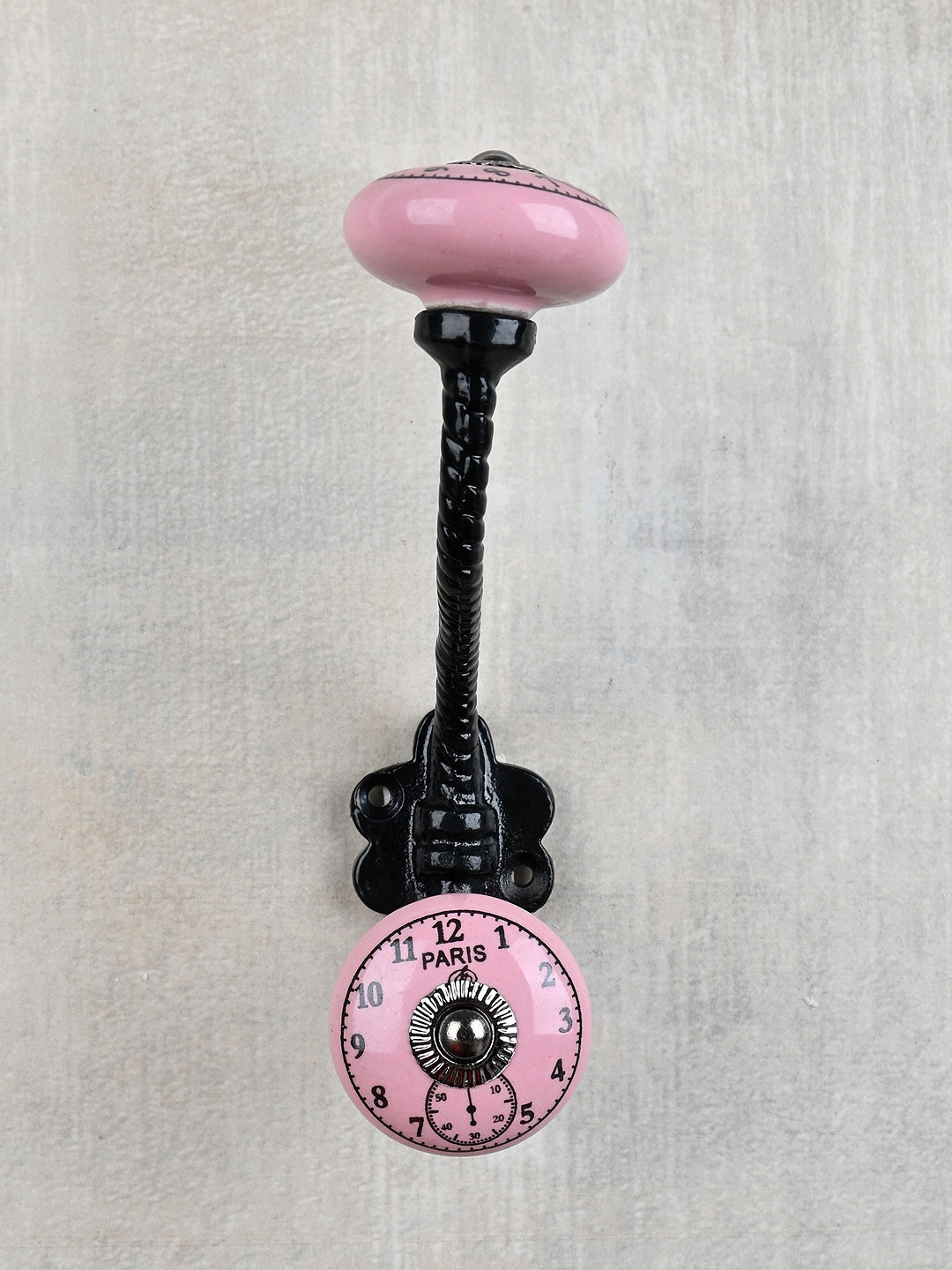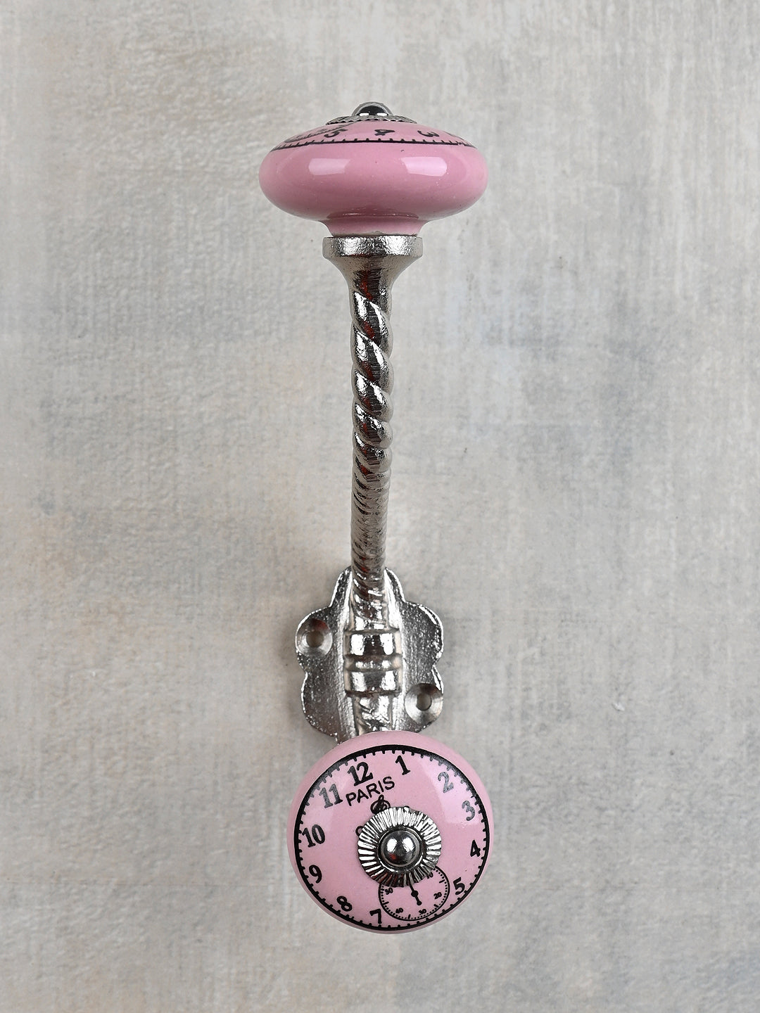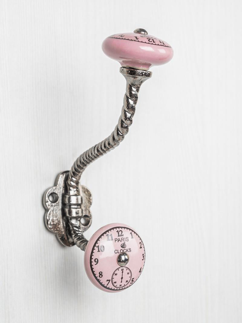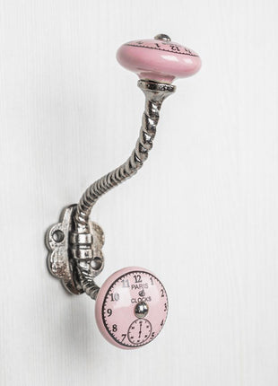 Round Pink Clock Ceramic Knob With Metal Wall Hanger
