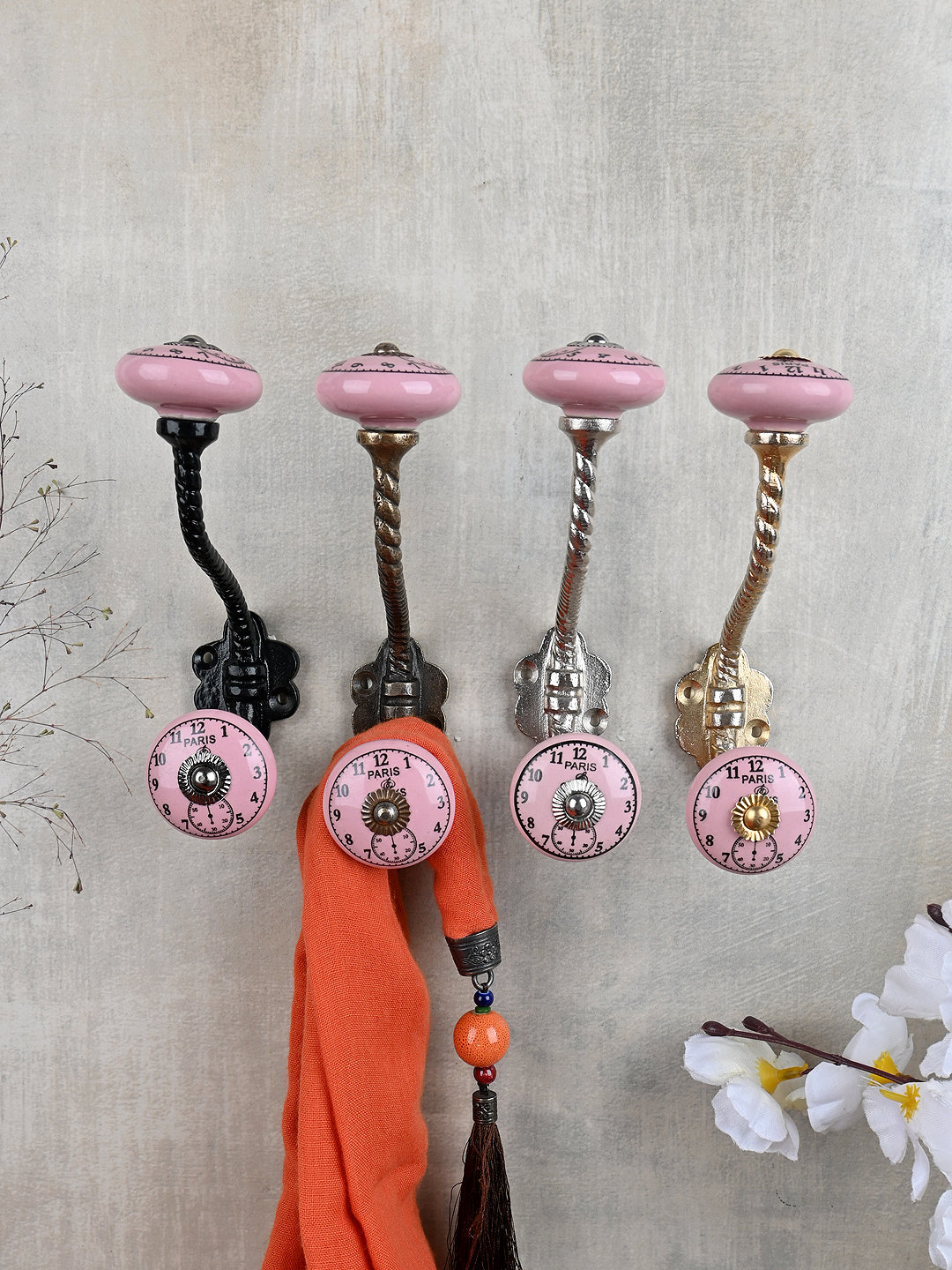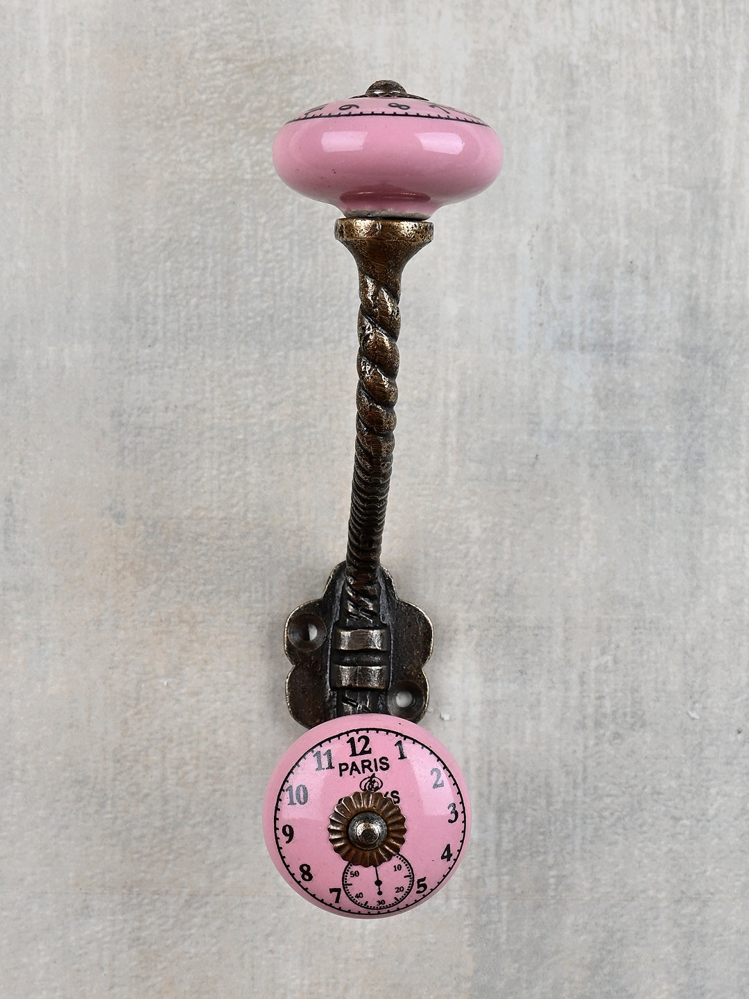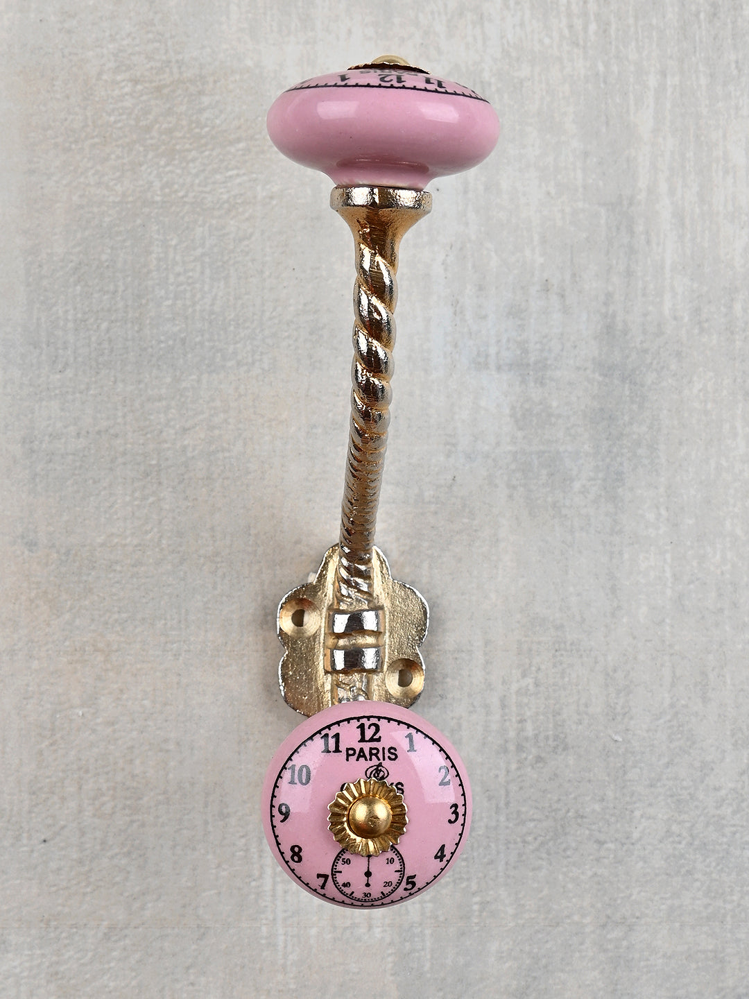 Round Pink Clock Ceramic Knob With Metal Wall Hanger