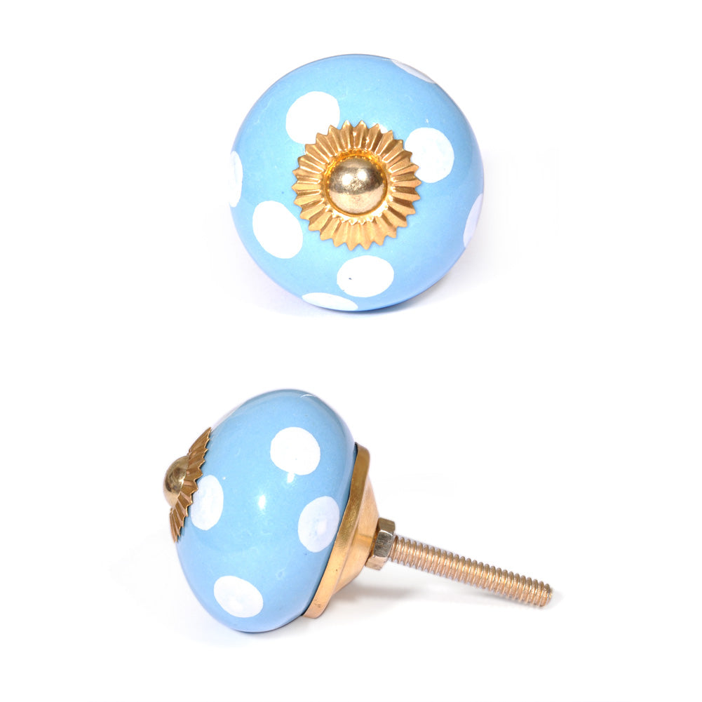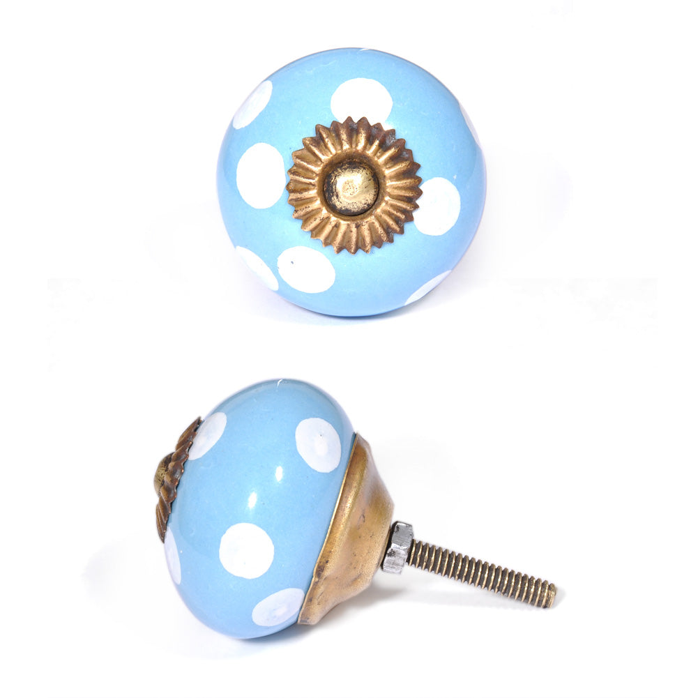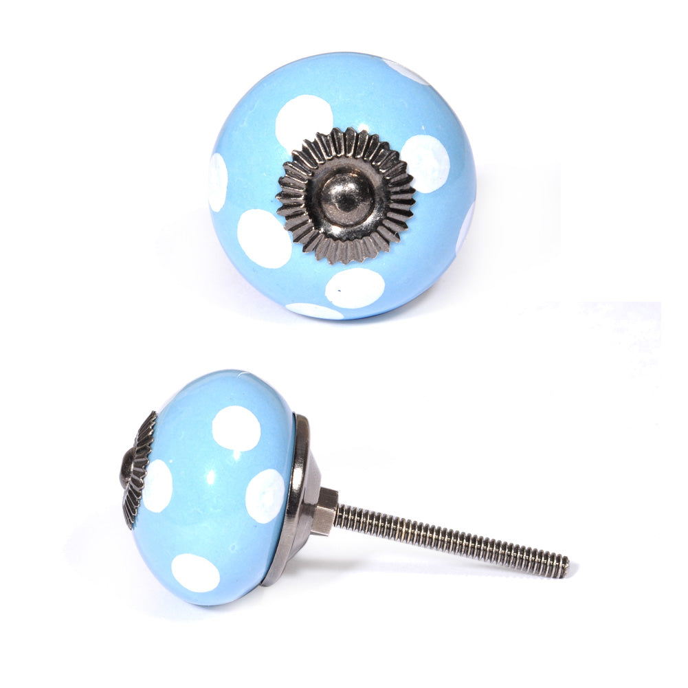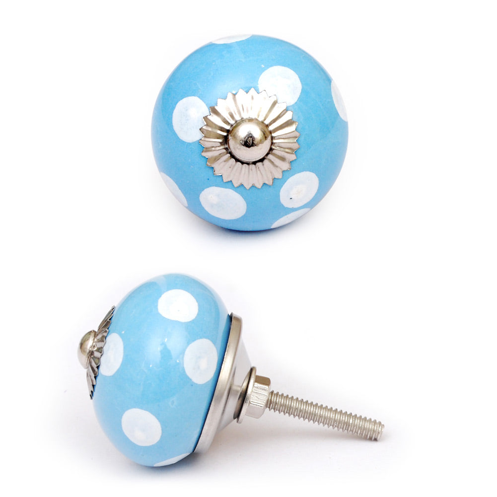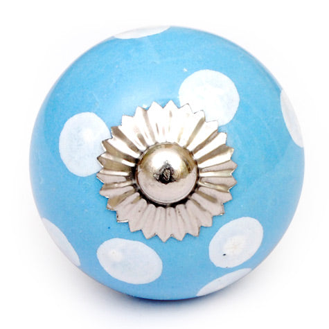 Round Turquoise Door Knob With White Polka-Dots