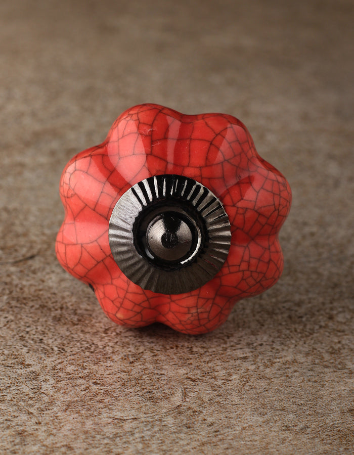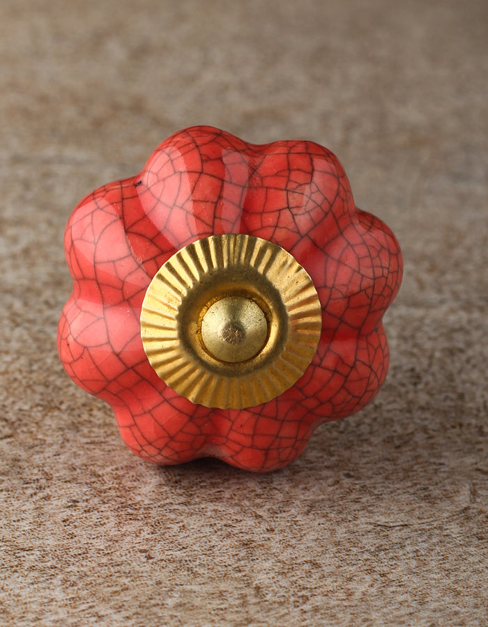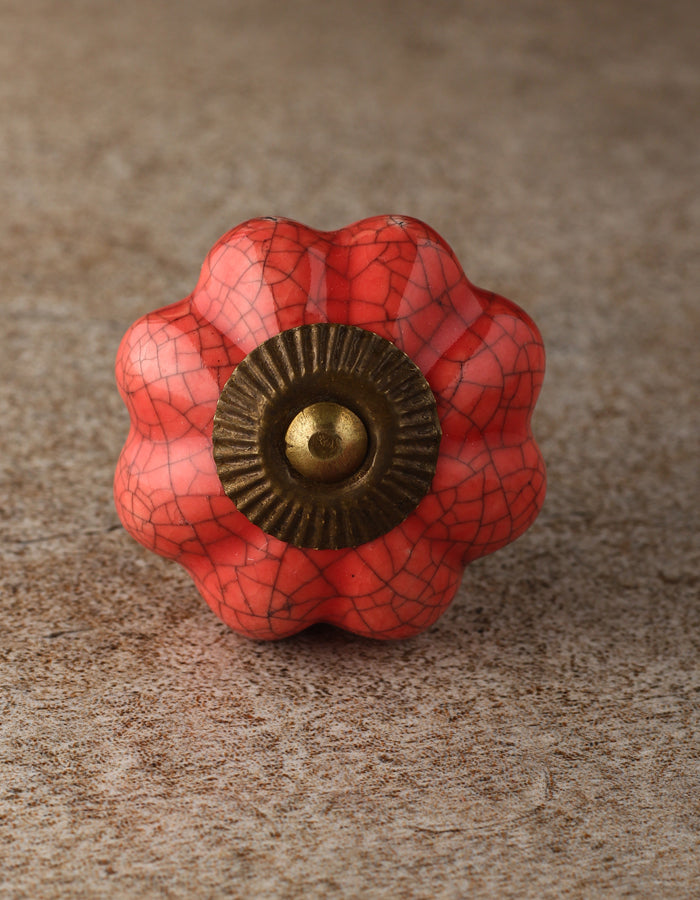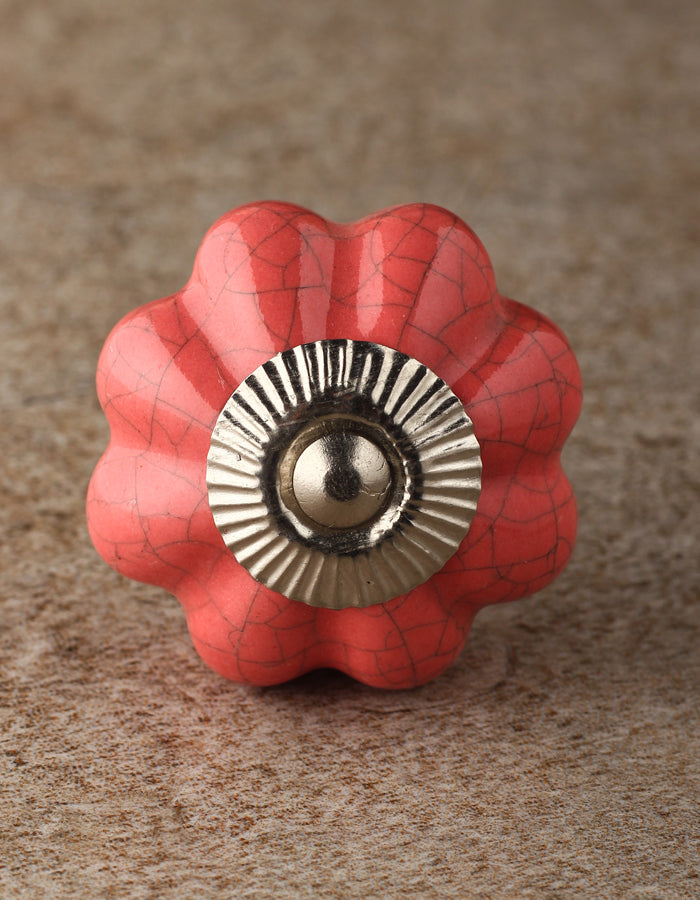 Salmon Cracked Flower Shaped Ceramic Cabinet Knob