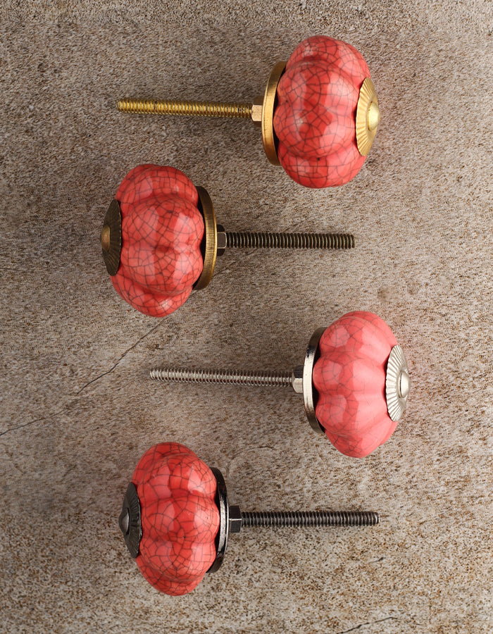 Salmon Cracked Flower Shaped Ceramic Cabinet Knob is well-designed hand painted knob that ensures the entire look of your room instantly. The flowered knob doesn't fail to add the natural hint to your home with the personal touch.