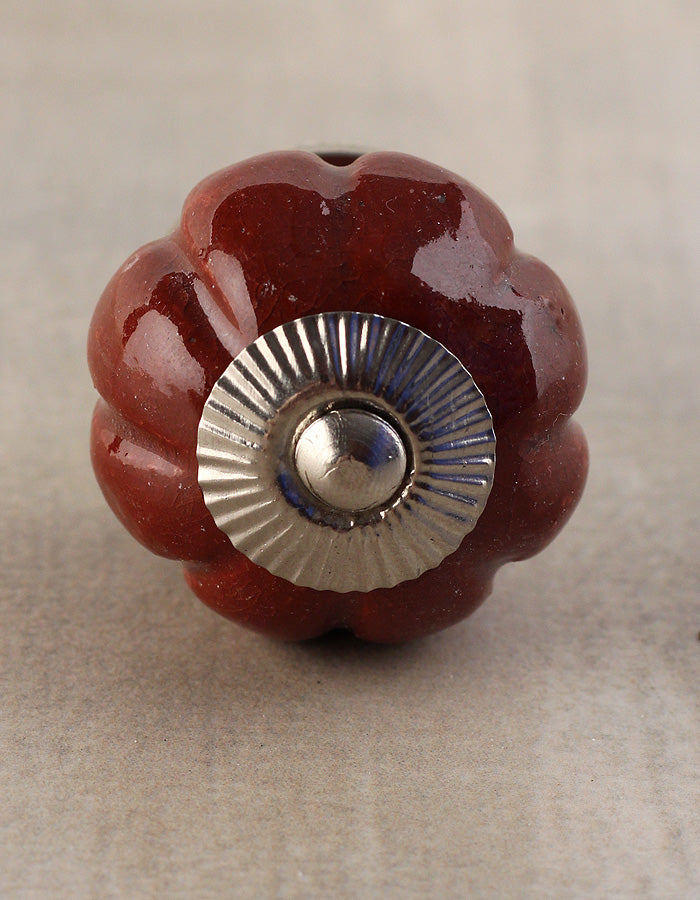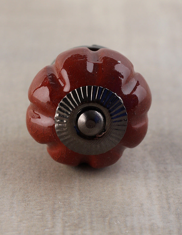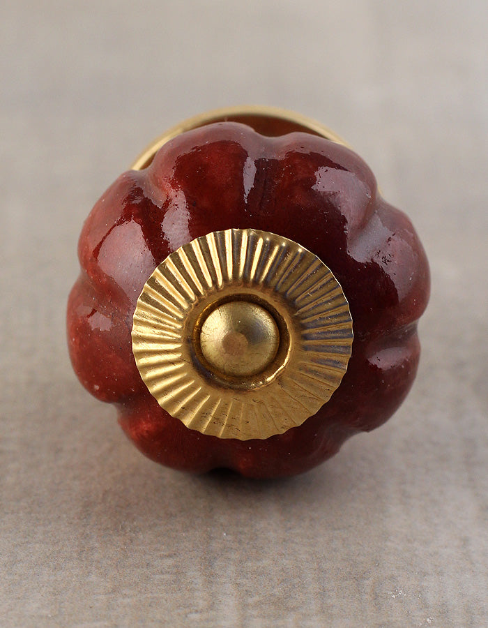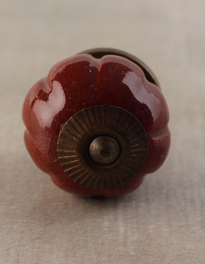Solid Maroon Melon Shaped Ceramic Kitchen Cabinet Knob