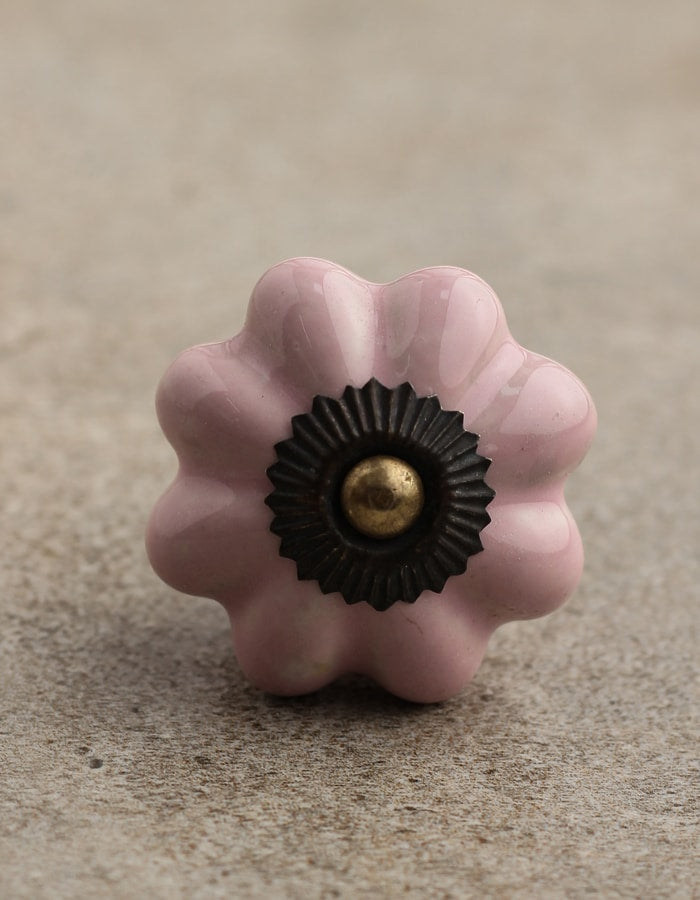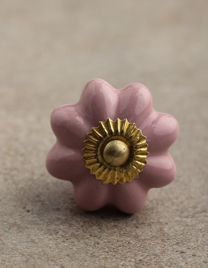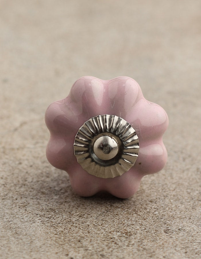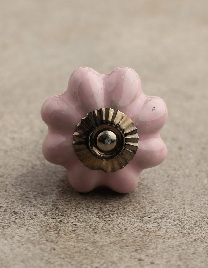 Solid Pink Flower Shape Ceramic Cabinet Knob