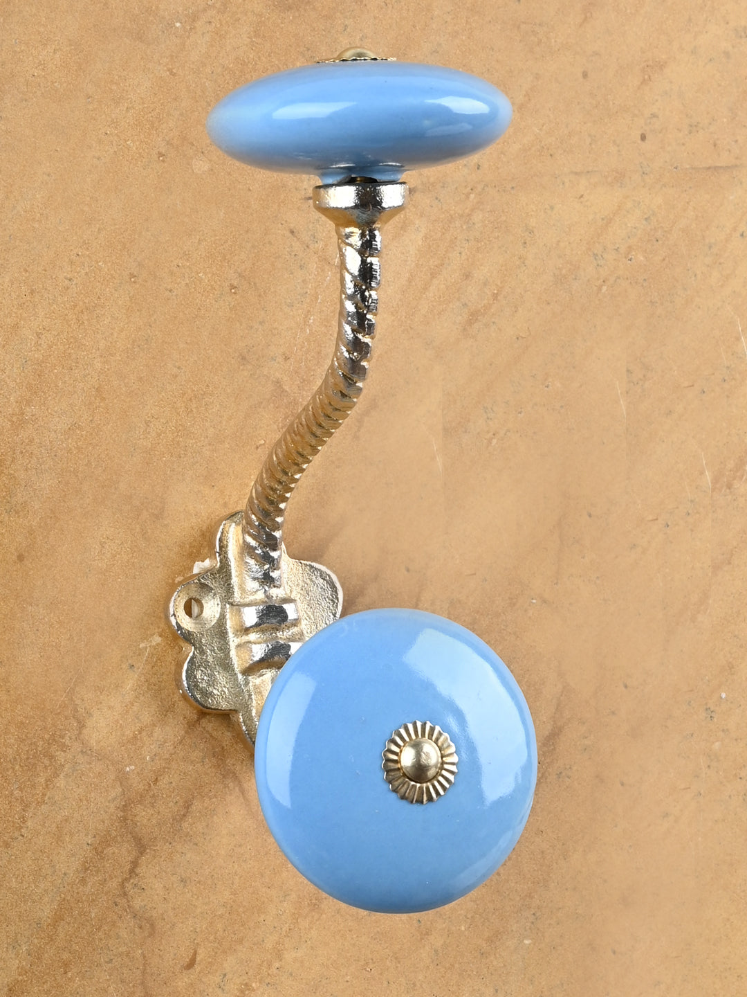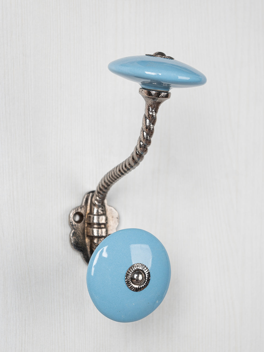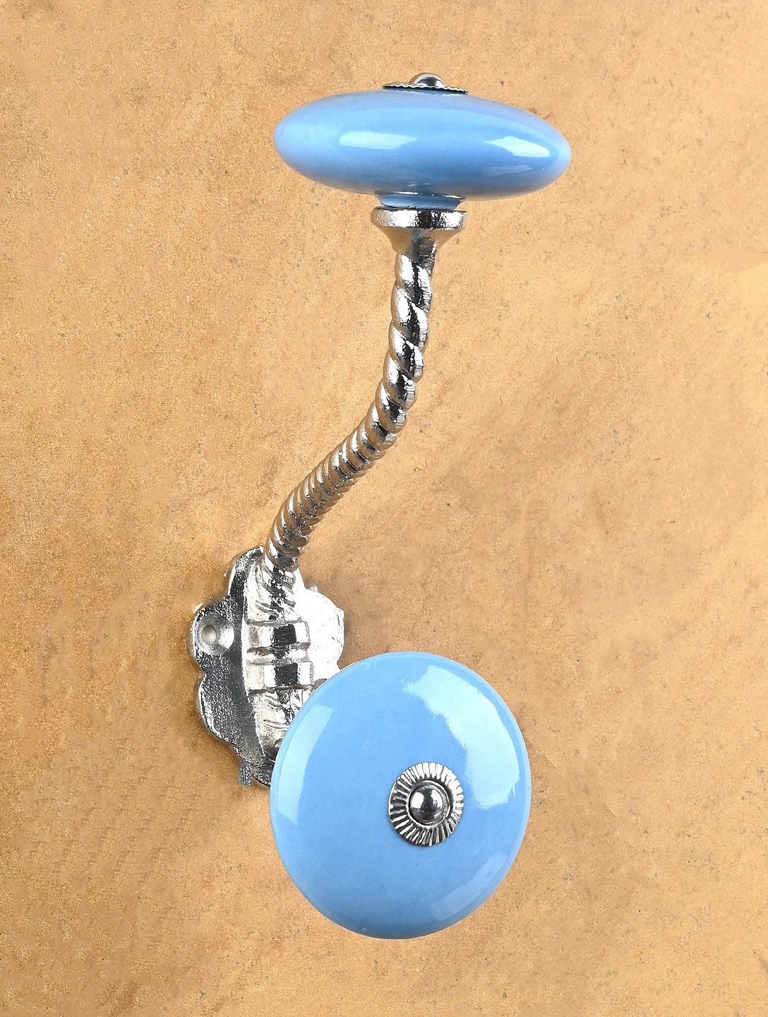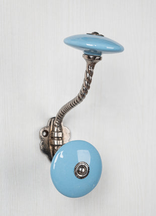 Solid Round Shape Turquoise Color Knob With Metal Wall Hanger