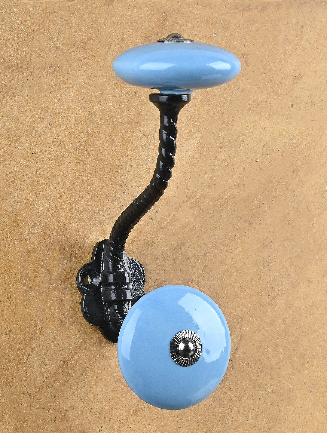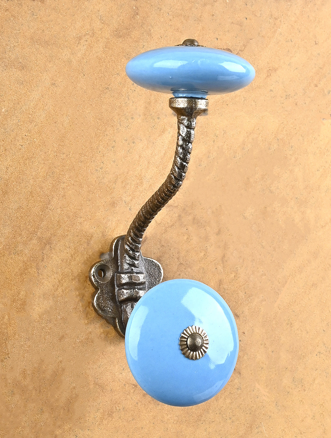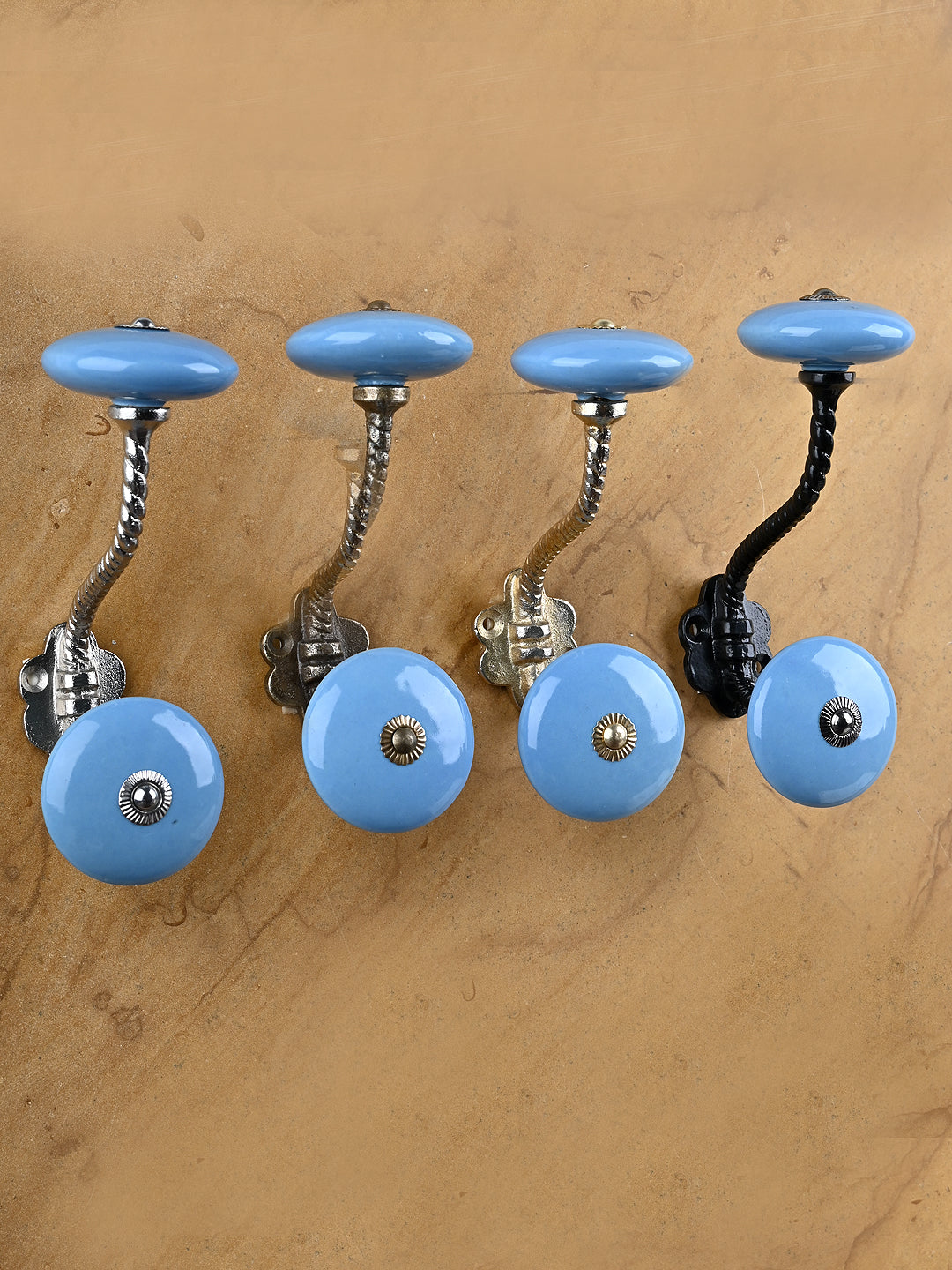 Solid Round Shape Turquoise Color Knob With Metal Wall Hanger