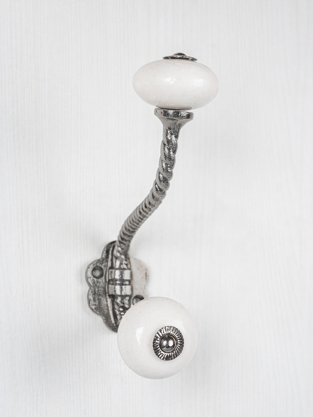 Solid White Knob With Metal Wall Hanger