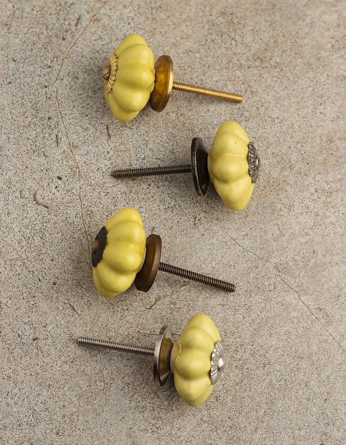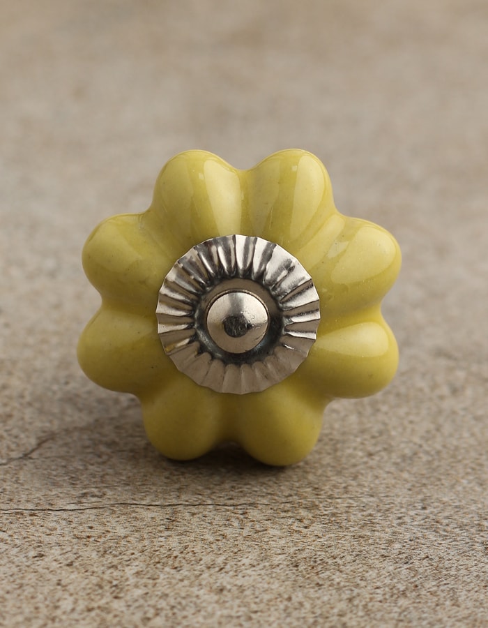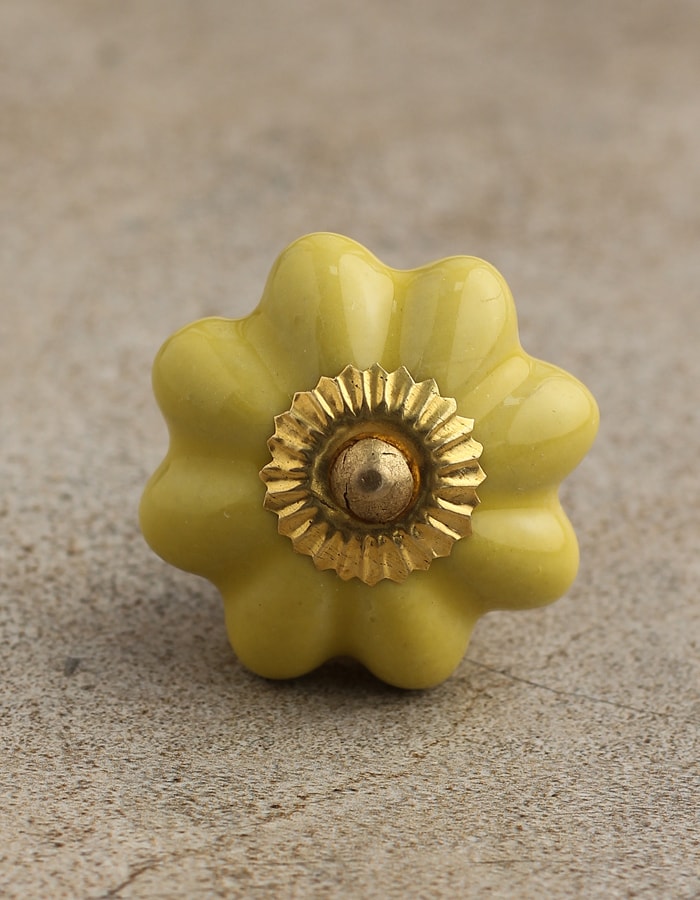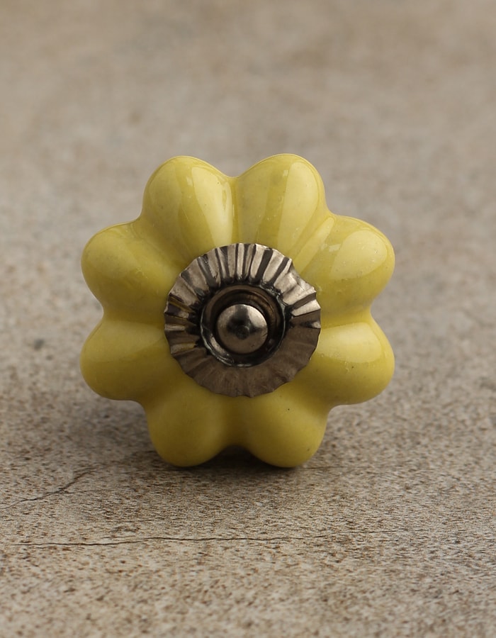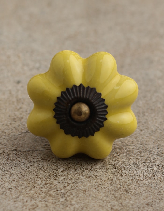 Solid Yellow Handmade Flower Shape Ceramic Cabinet Knob