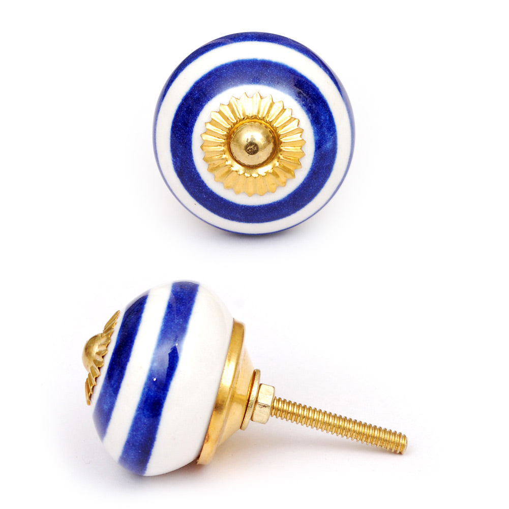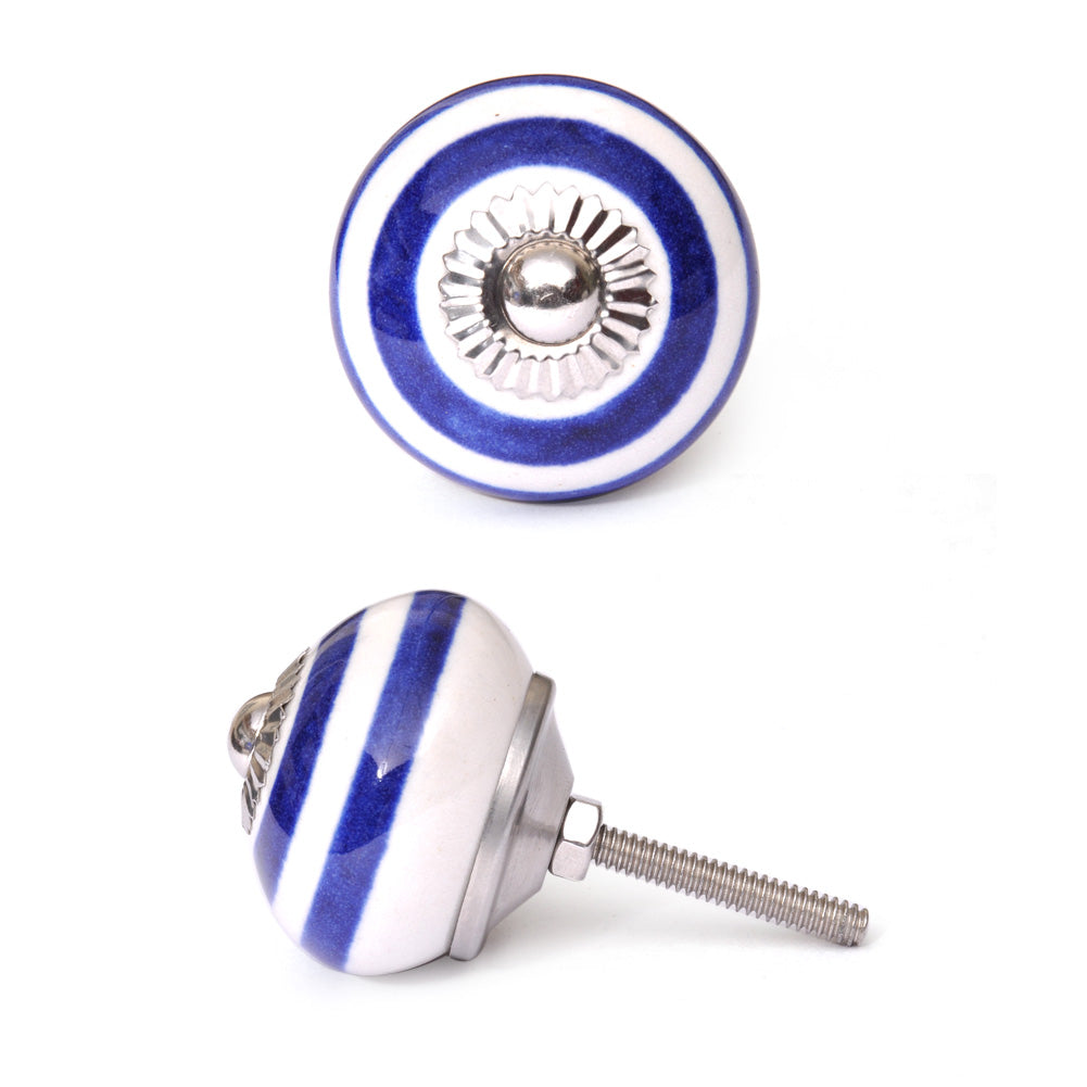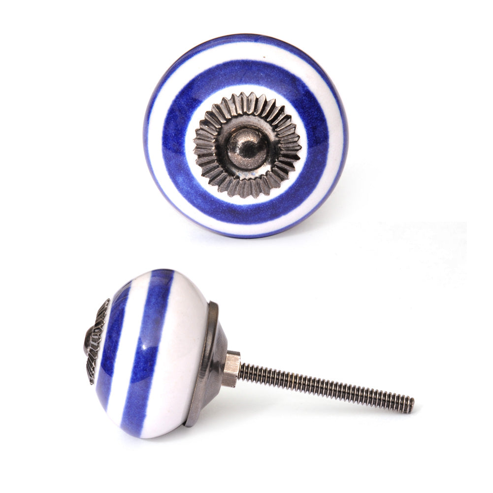 Spiral White And Blue Royal Ceramic Door Knob