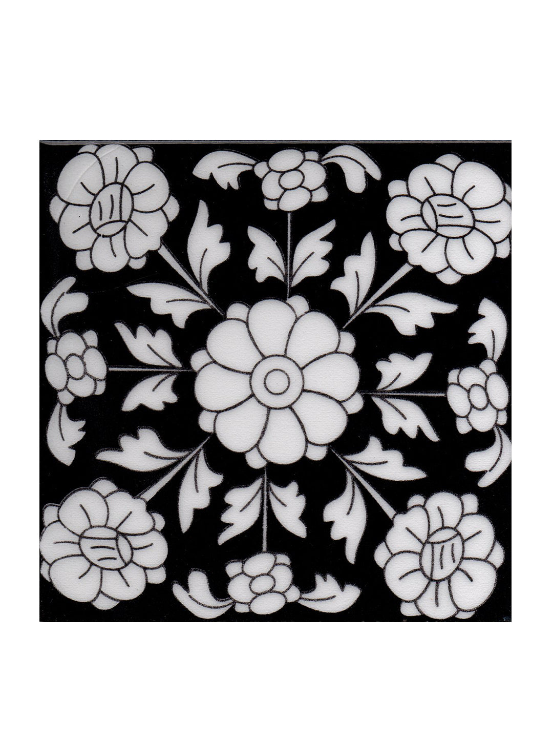 Stair Case Riser Black and White Screen Printed Tile 6x6 inch