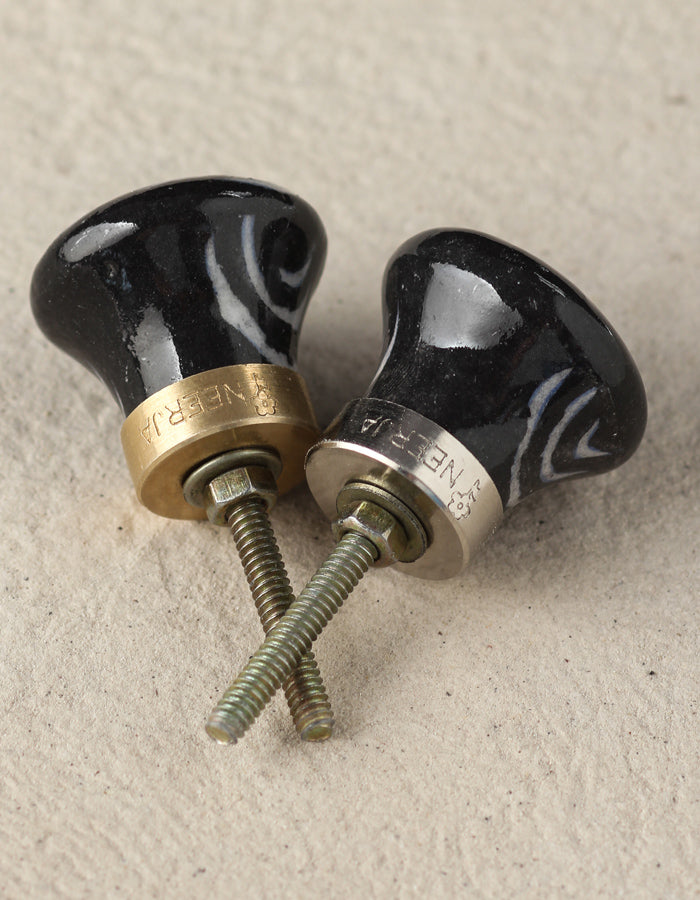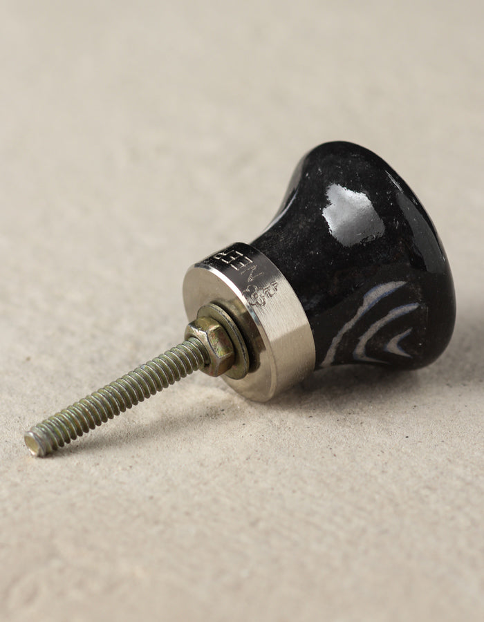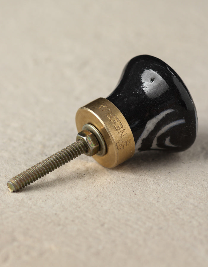 Stylish Black And White Spiral Ceramic Blue Pottery Kitchen Cabinet Knob