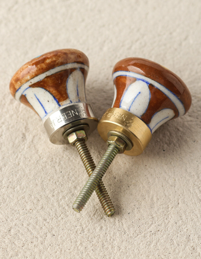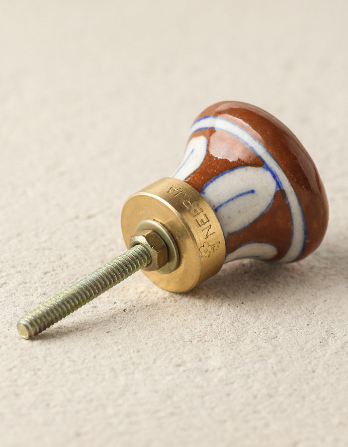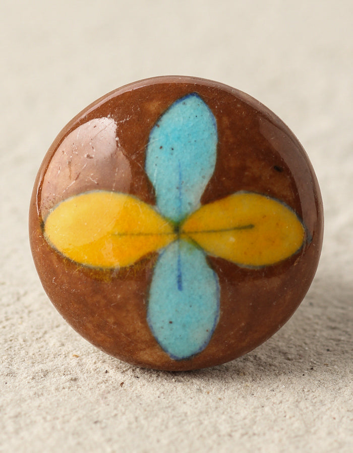 Stylish Brown Dresser Cabinet Knob With Yellow And Turquoise Petals