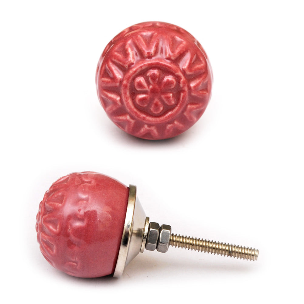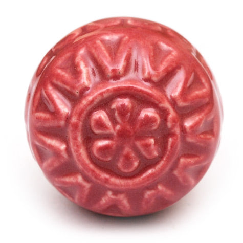Stylish Carved Red Ceramic Kitchen Cabinet Knob