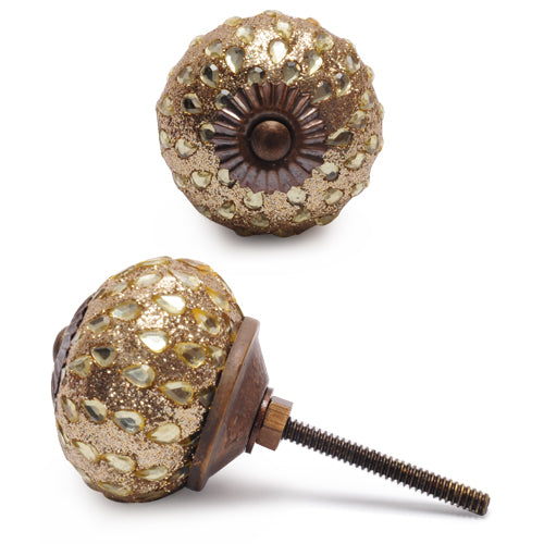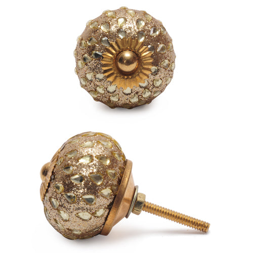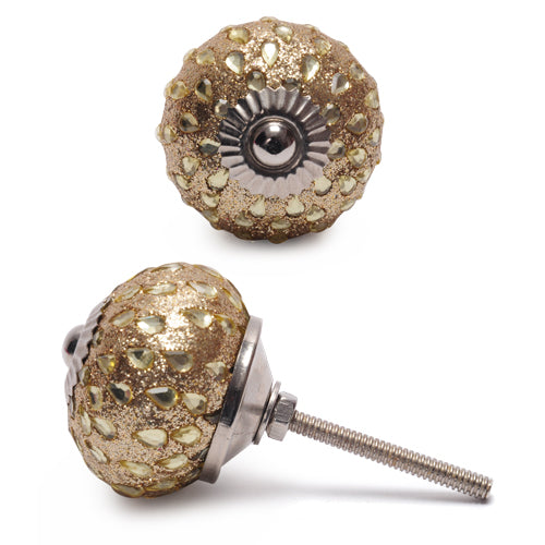 Stylish Golden Sand Base Drawer Knob With Glass Dew Drops