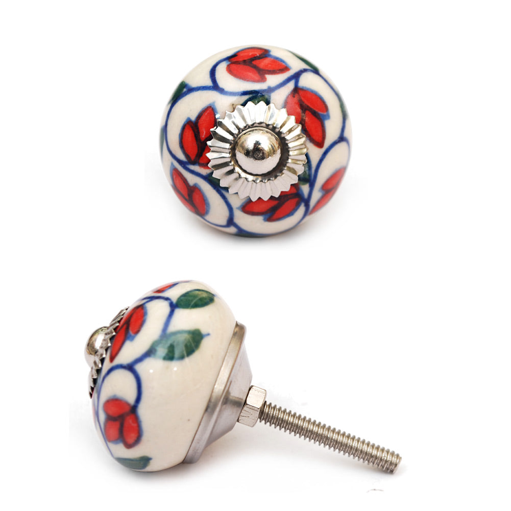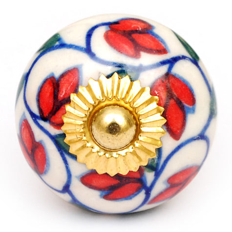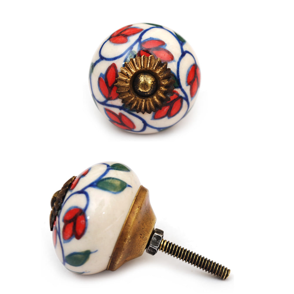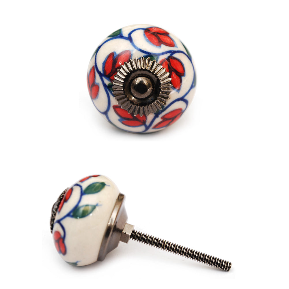 Stylish Red Petals On White Ceramic Dresser Cabinet Knob