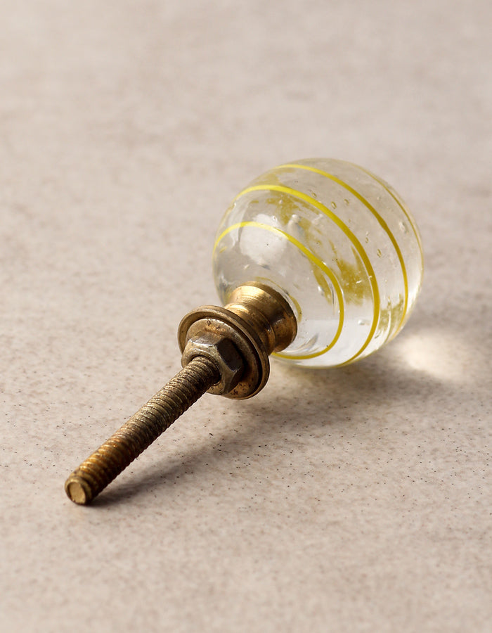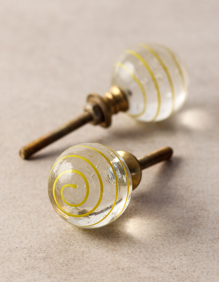 Stylish Transparent Glass Kitchen Cabinet Knob With Yellow Spiral