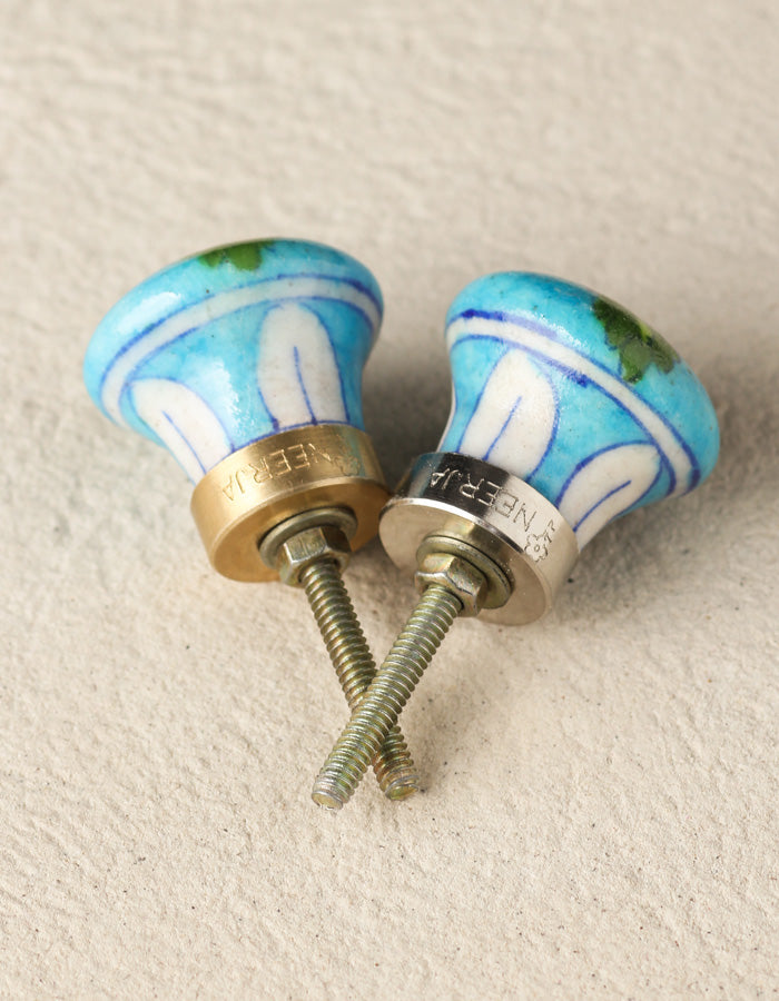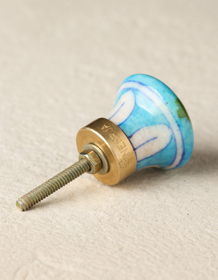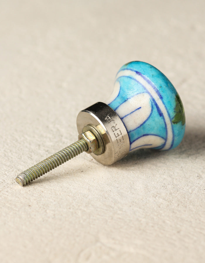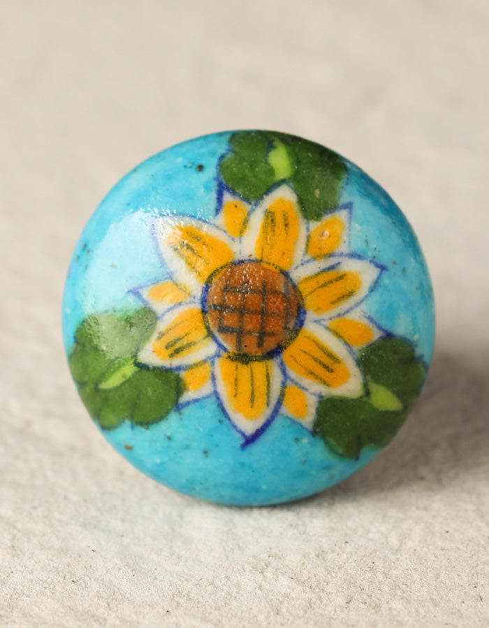 Stylish Turquoise Ceramic Blue Pottery Drawer Knob With Yellow Flower